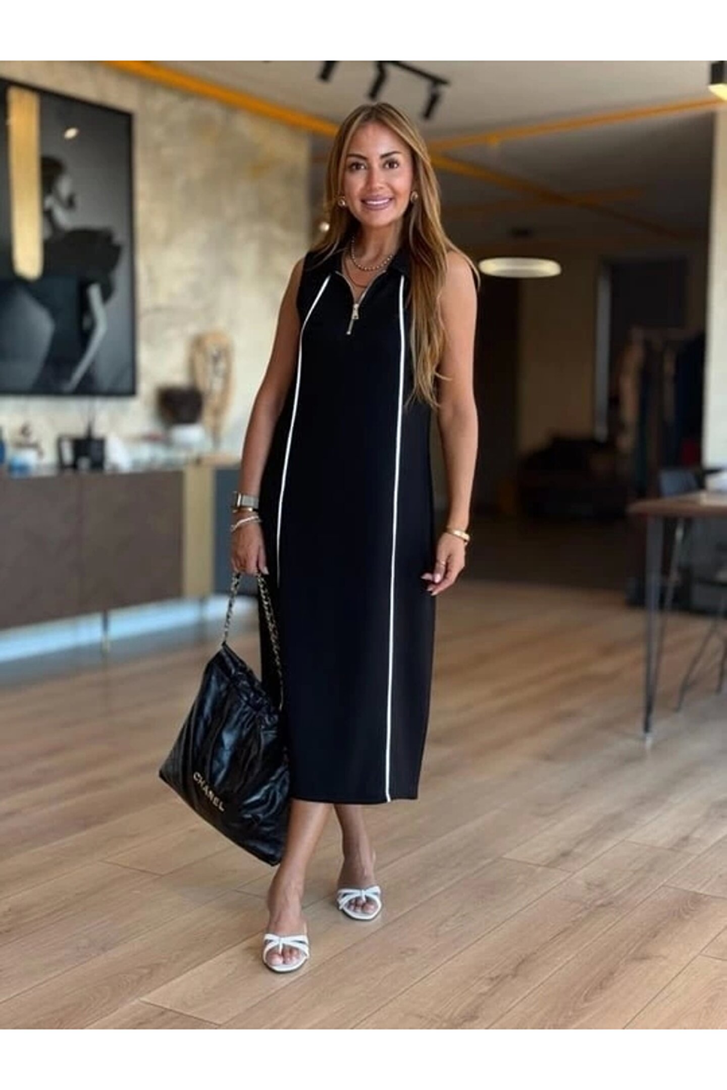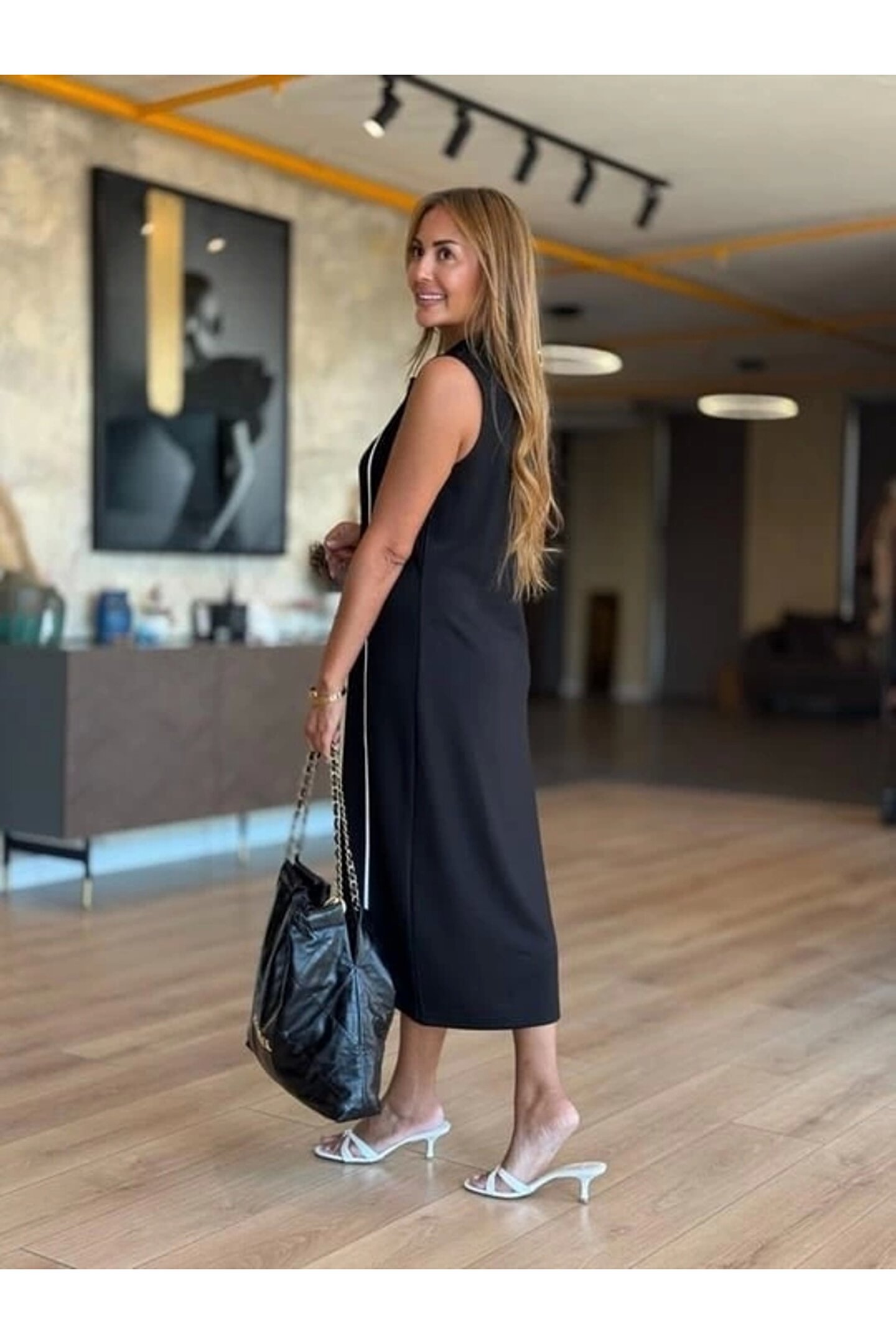 Kadın Modal Kumaş şerit Detaylı Fermuarlı Midi Elbise