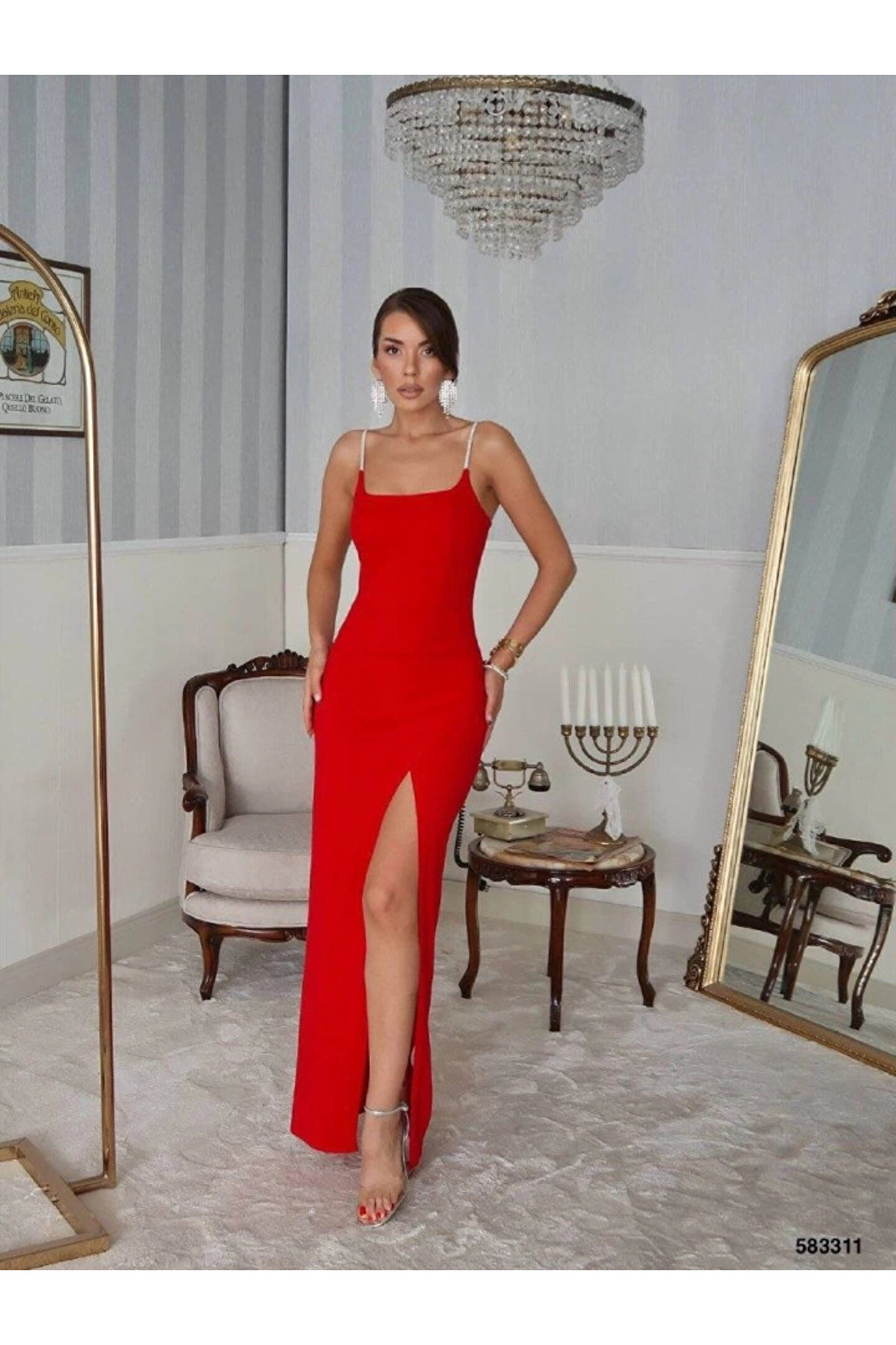 Wear Up Kadın Omuz Askılı Derin Yırtmaç Detay Maxi Boy Elbise