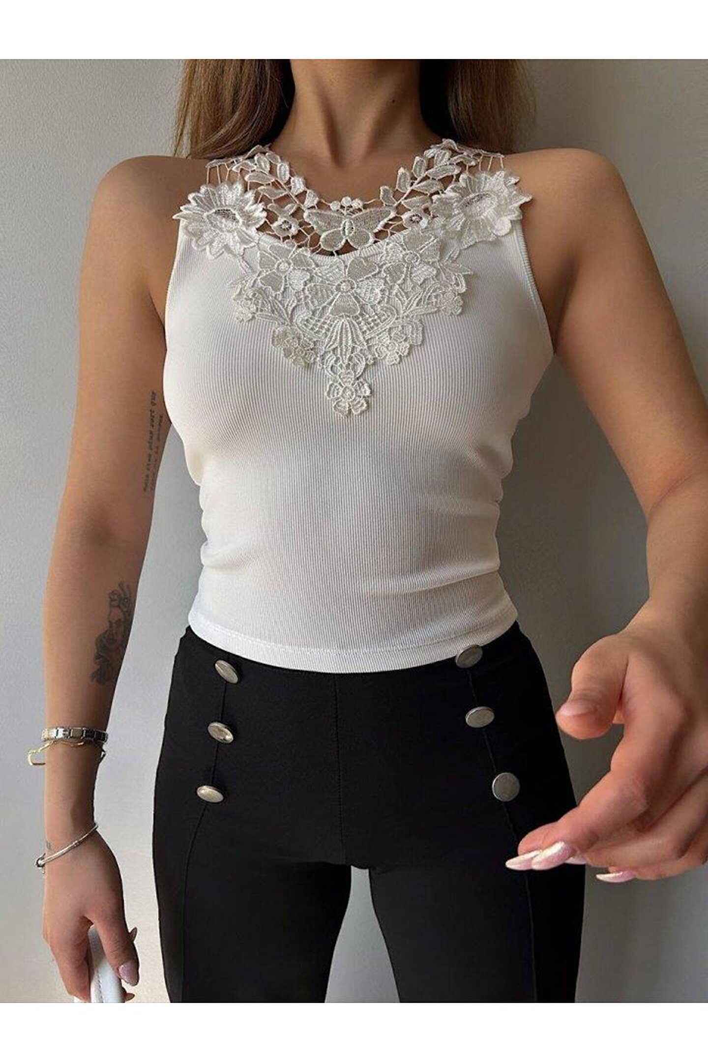 Kadın Ottoman Kumaş Dantel Detaylı Bluz