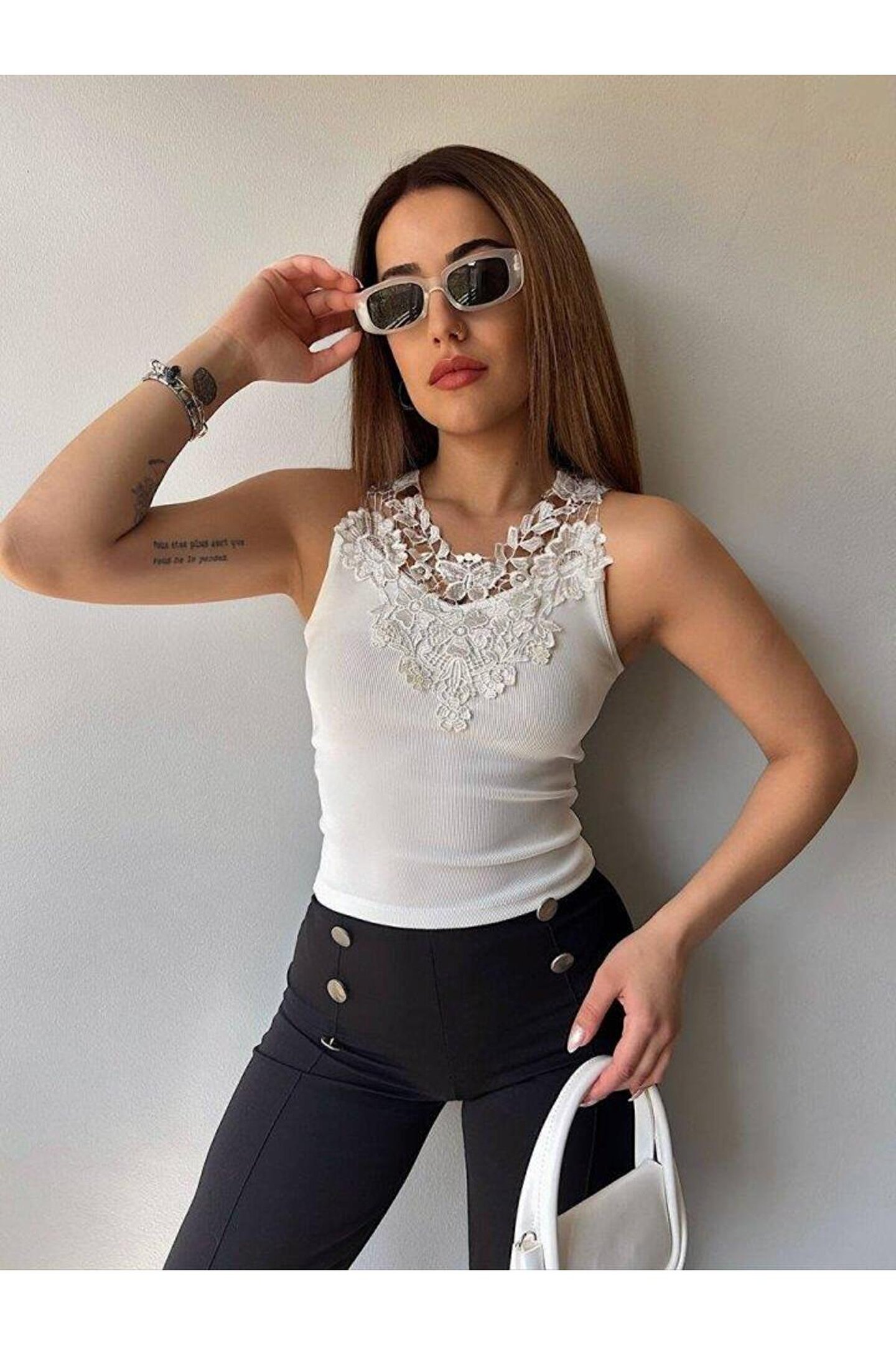 Wear Up Kadın Ottoman Kumaş Dantel Detaylı Bluz