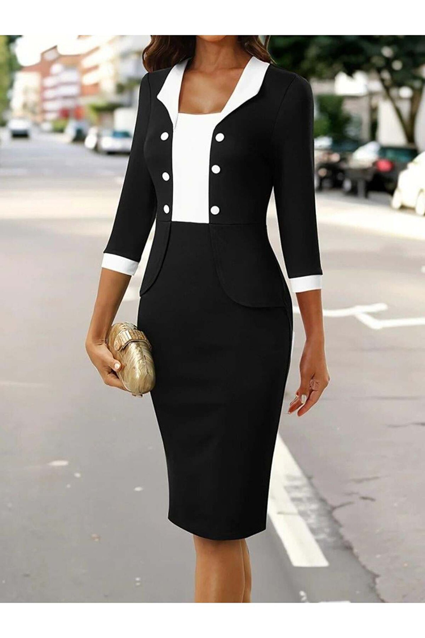 Kadın Truvakar Kol çift Renkli Düğmeli Kısa Ithal Krep Elbise