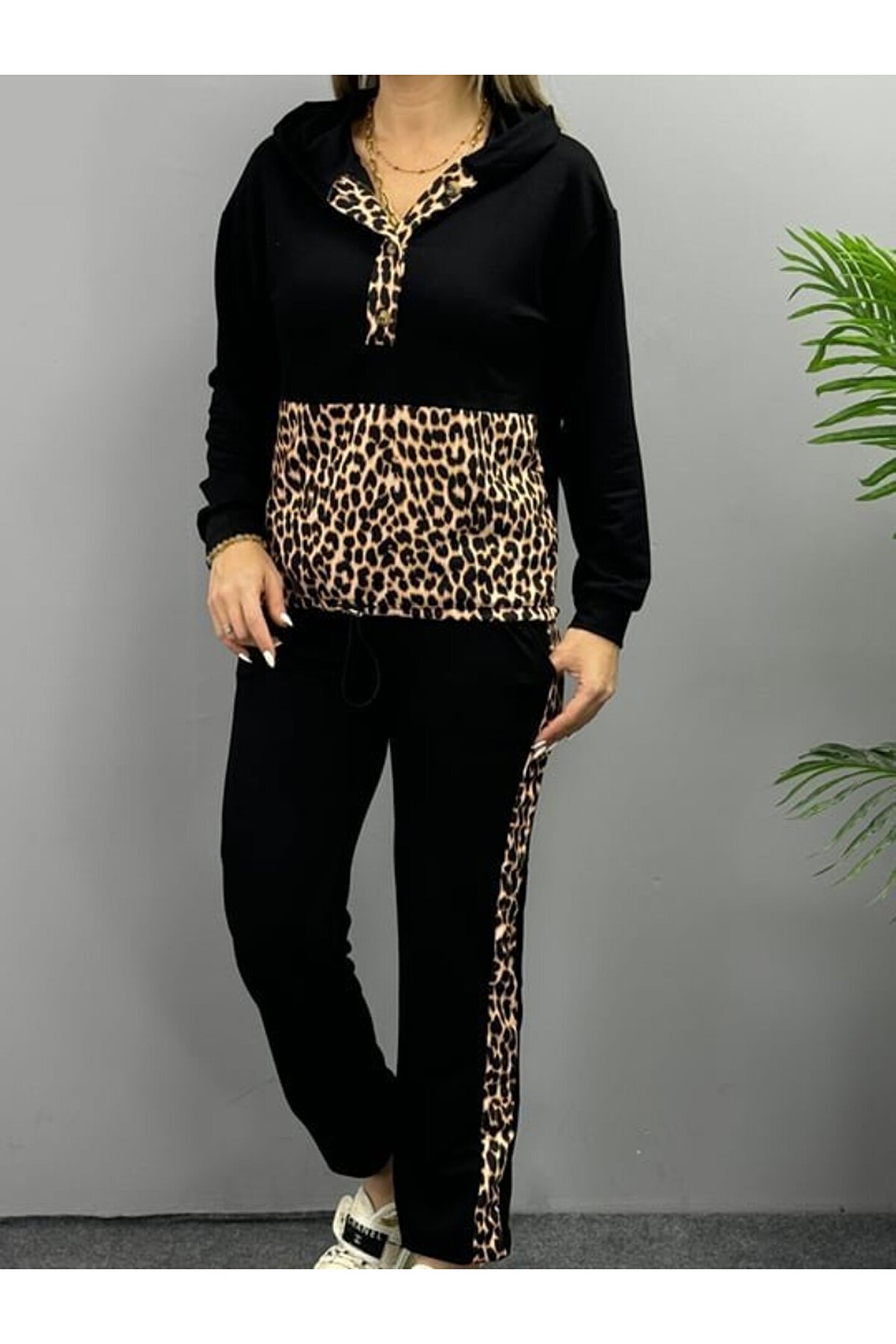 Kadın Uzun Kollu Leopar Detay Sweat Ve Yanı Leopar şerit Detay Pantolon Ikili Takım