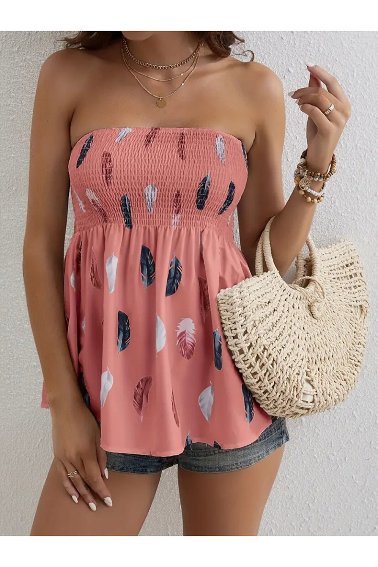 Kadın Yaprak Desenli Göğsü Gipeli Mosskrep Straplez Bluz