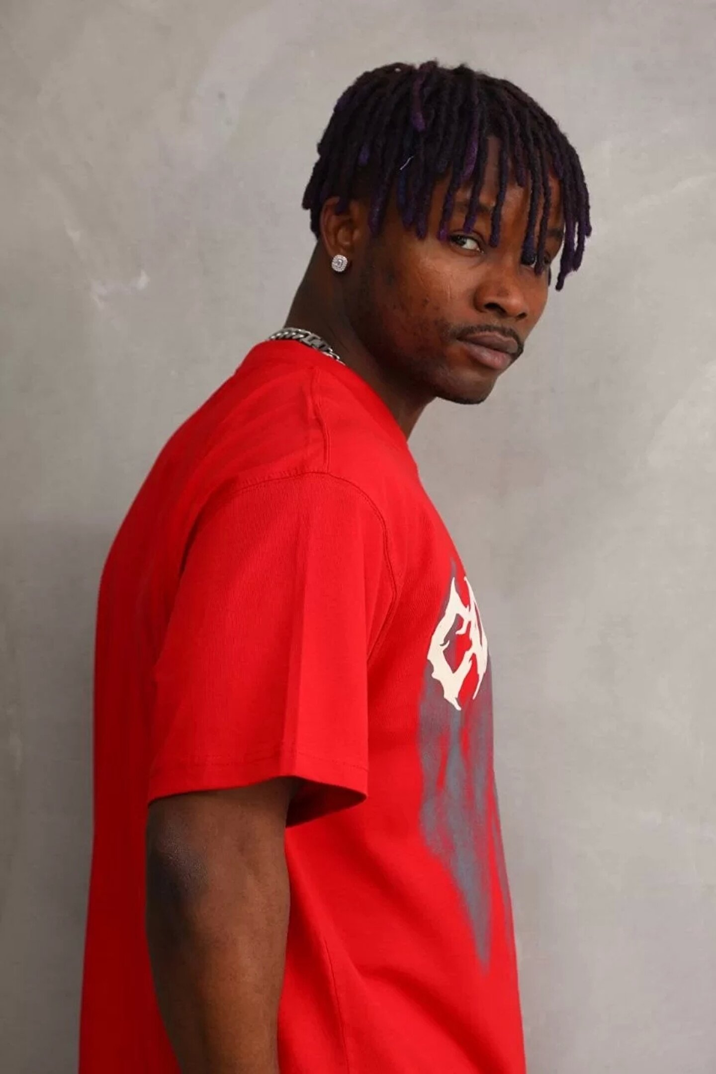 Unisex Baskılı Oversize T-Shirt - Kırmızı