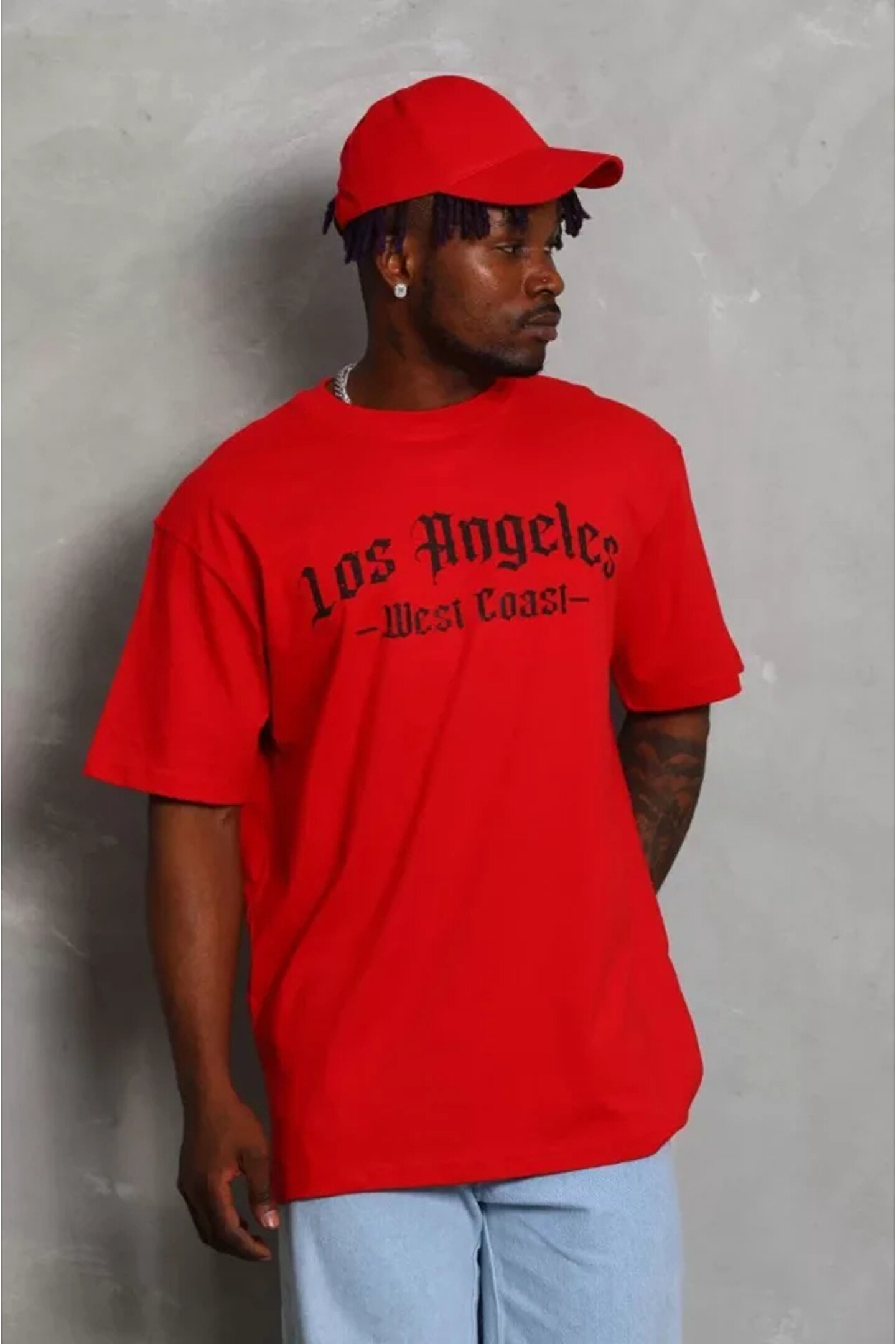Wear Up Unisex Oversize Baskılı Bisiklet Yaka T-Shirt - Kırmızı