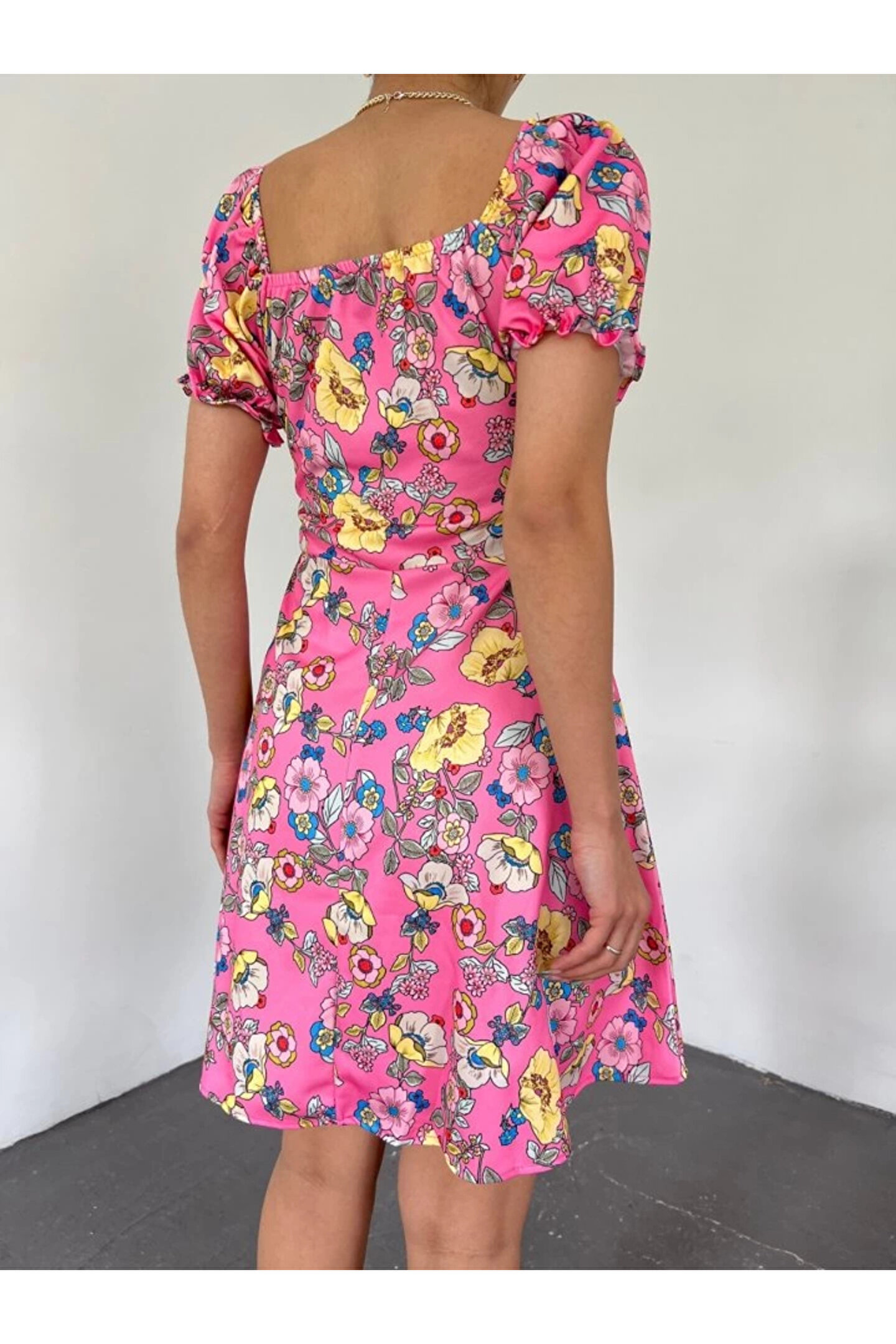 Wear Up Yakası Lastikli Bağcık Detaylı Mini Elbise -Pembe