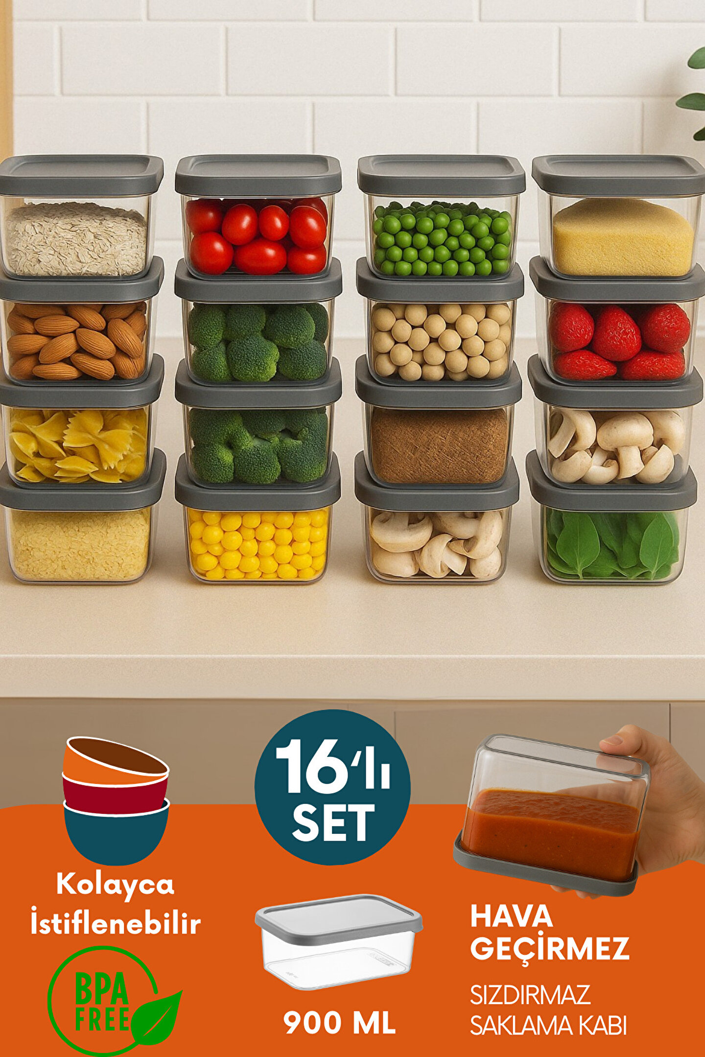 Kuru bakliyat, meyve, sebze, atıştırmalık ya da pişmiş yemekler için mükemmel bir saklama çözümüdür. Pratik mutfaklar için vazgeçilmez!