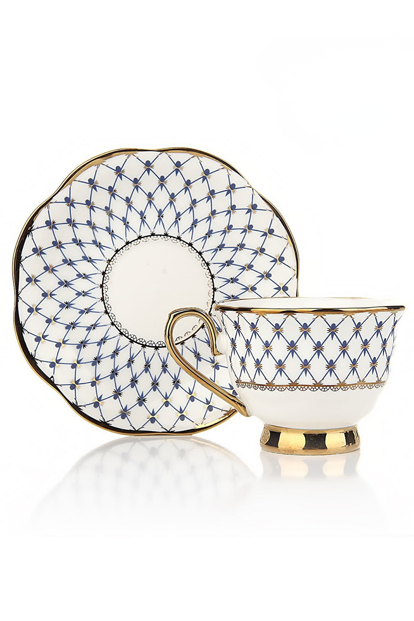 Renk: Beyaz – Mavi detaylı, altın şeritli