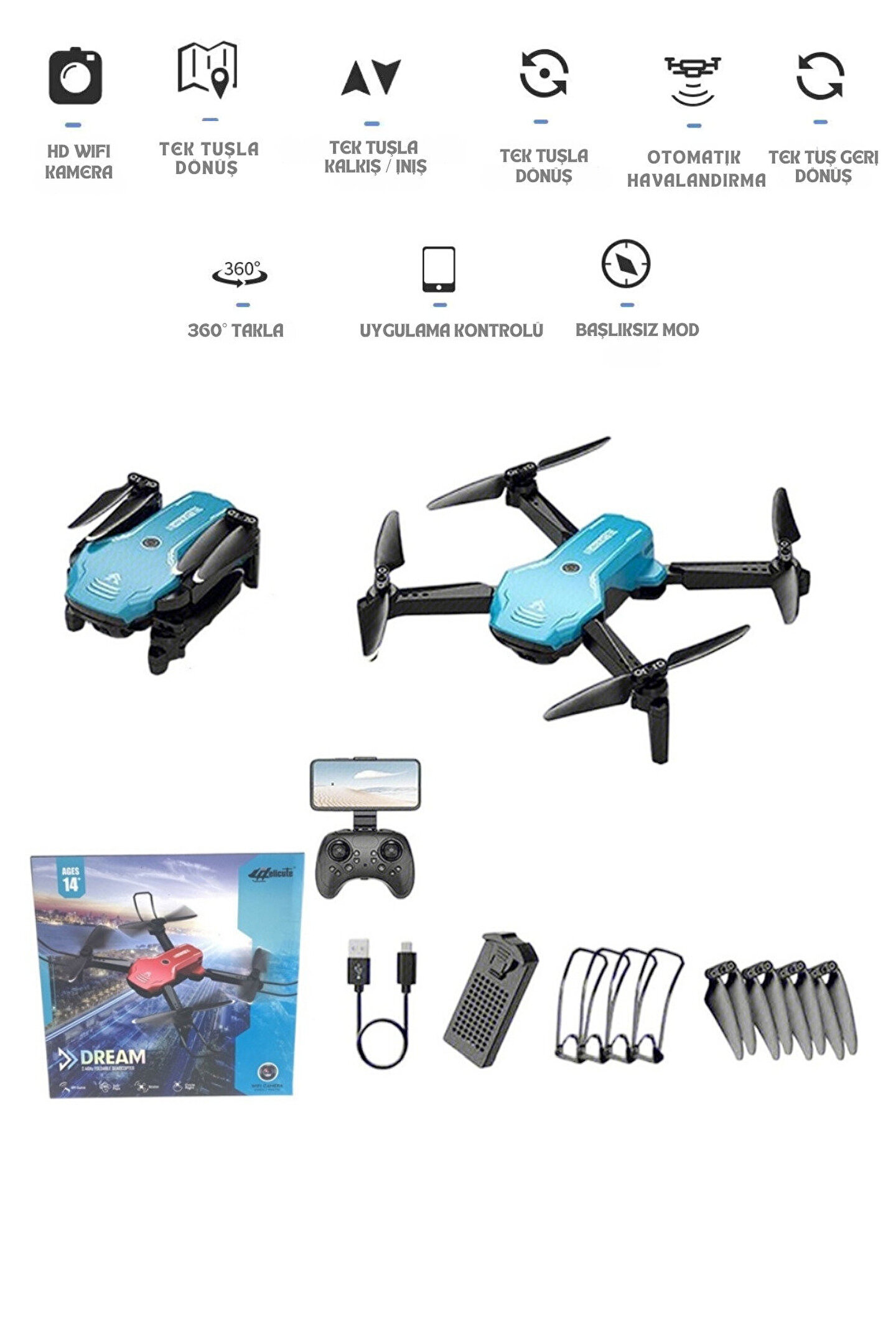 2.4G Uzaktan Kumandalı Wifi HD Kameralı Şarjlı Full Fonksiyon Katlanabilir Drone APP Kontrollü Dron