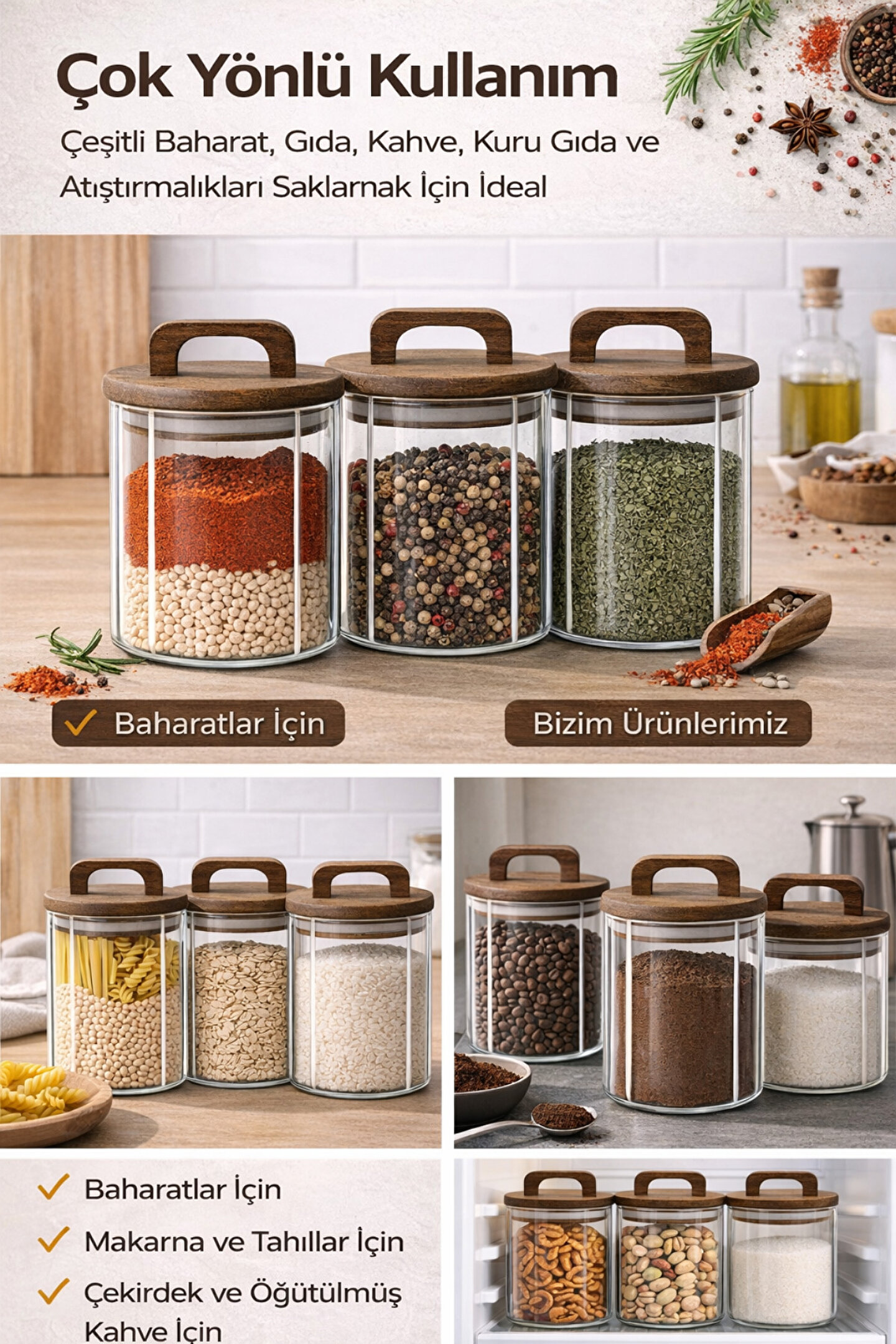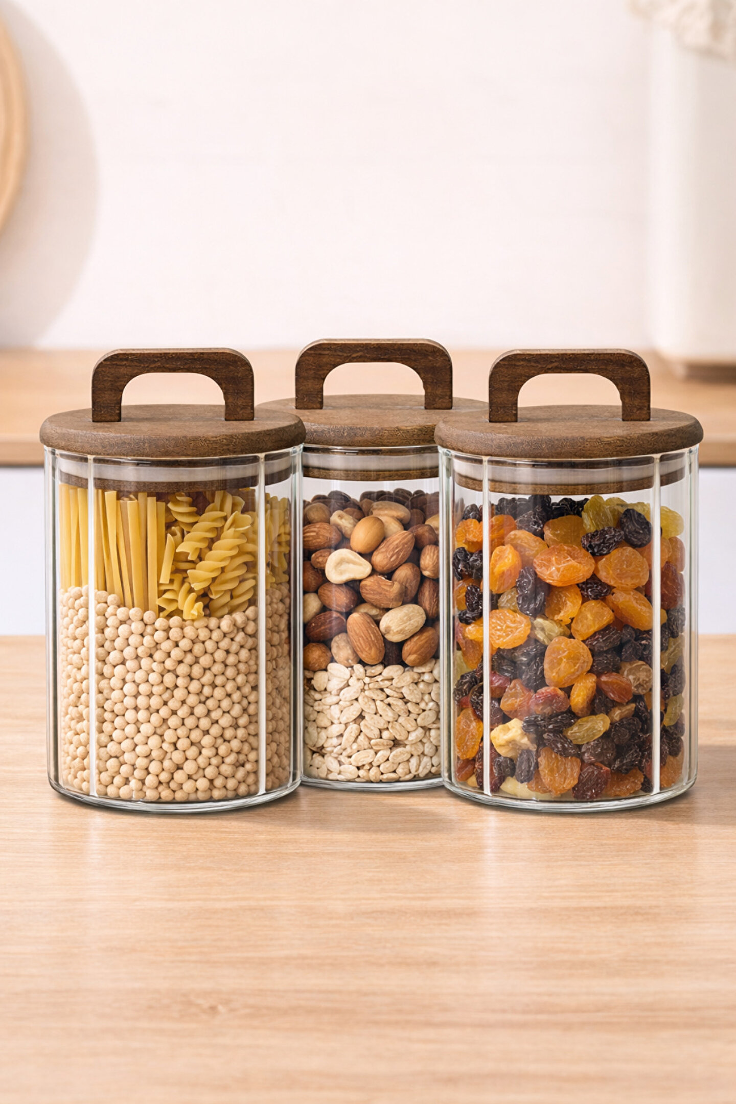 Welcomein 3’lü Cam Kavanoz Seti, mutfağınızda hem düzen hem de estetik arayanlar için özel olarak tasarlanmıştır.