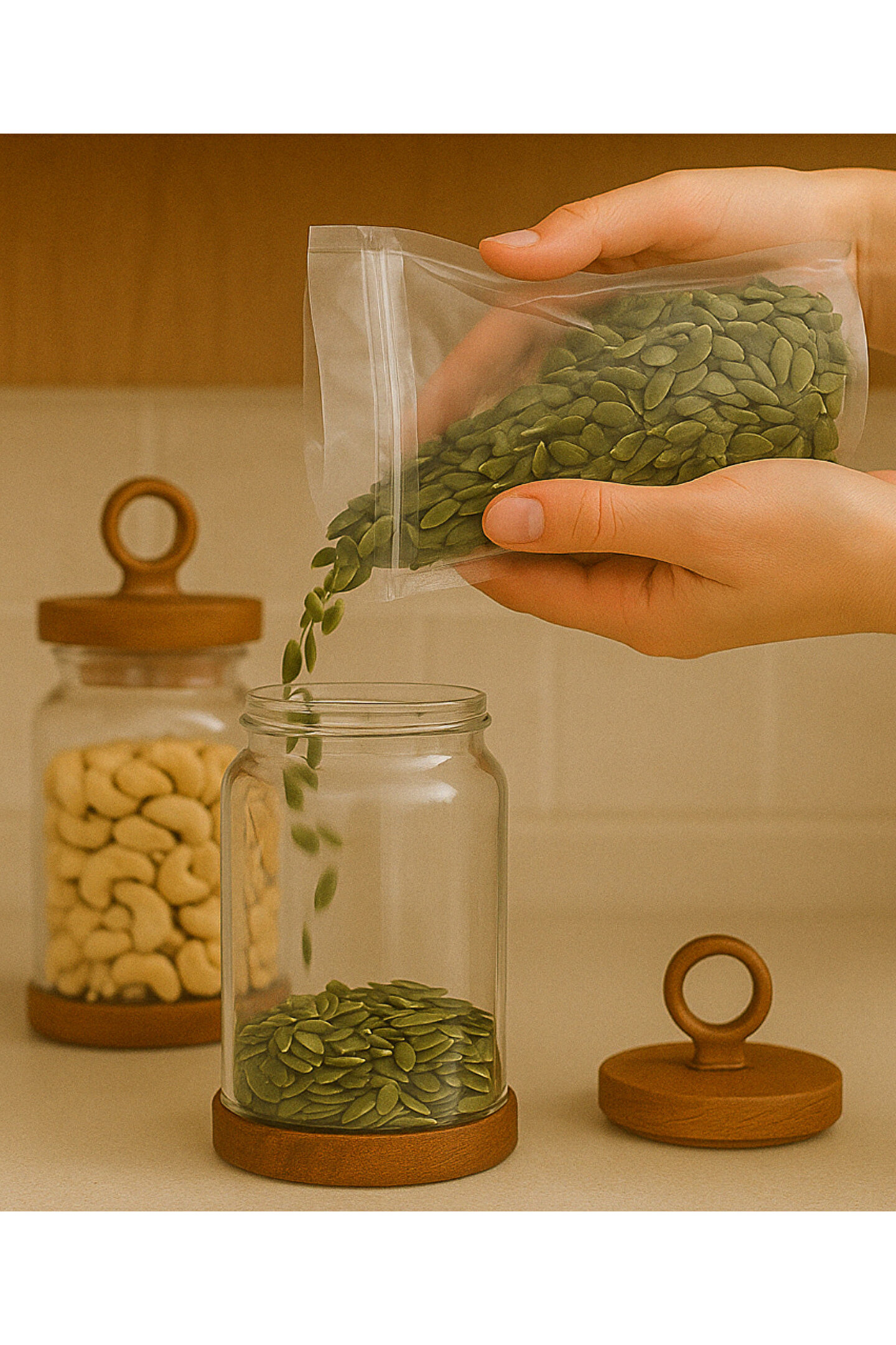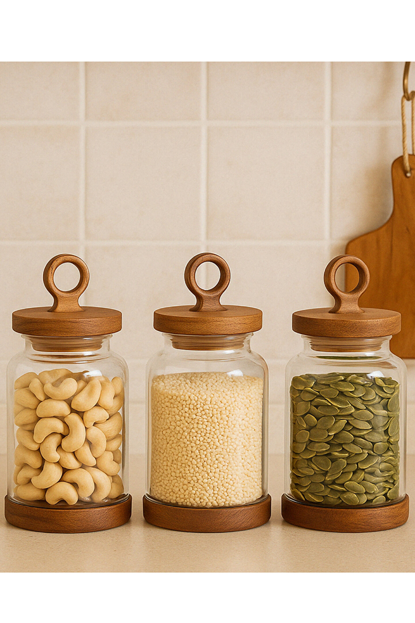 Mutfağınızda hem estetik hem de düzen arıyorsanız, Mien markasının BOR-011 model ahşap kapaklı cam kavanoz seti tam size göre!