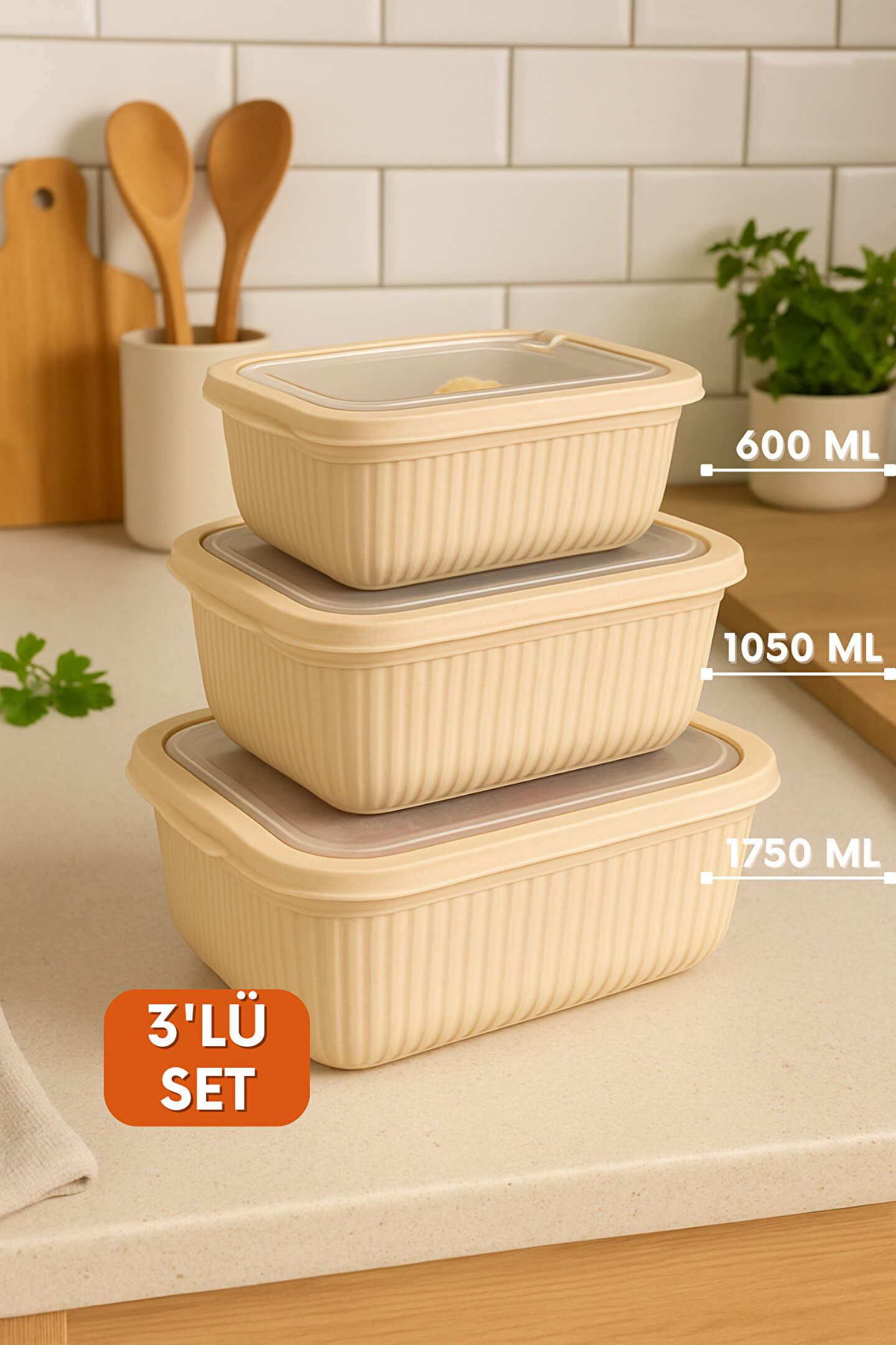welcomein 3lü Mikrodalga Uyumlu Dikdörtgen Gıda Saklama Kabı Seti Sızdırmaz Kapaklı Buzdolabı Dondurucu Uygun