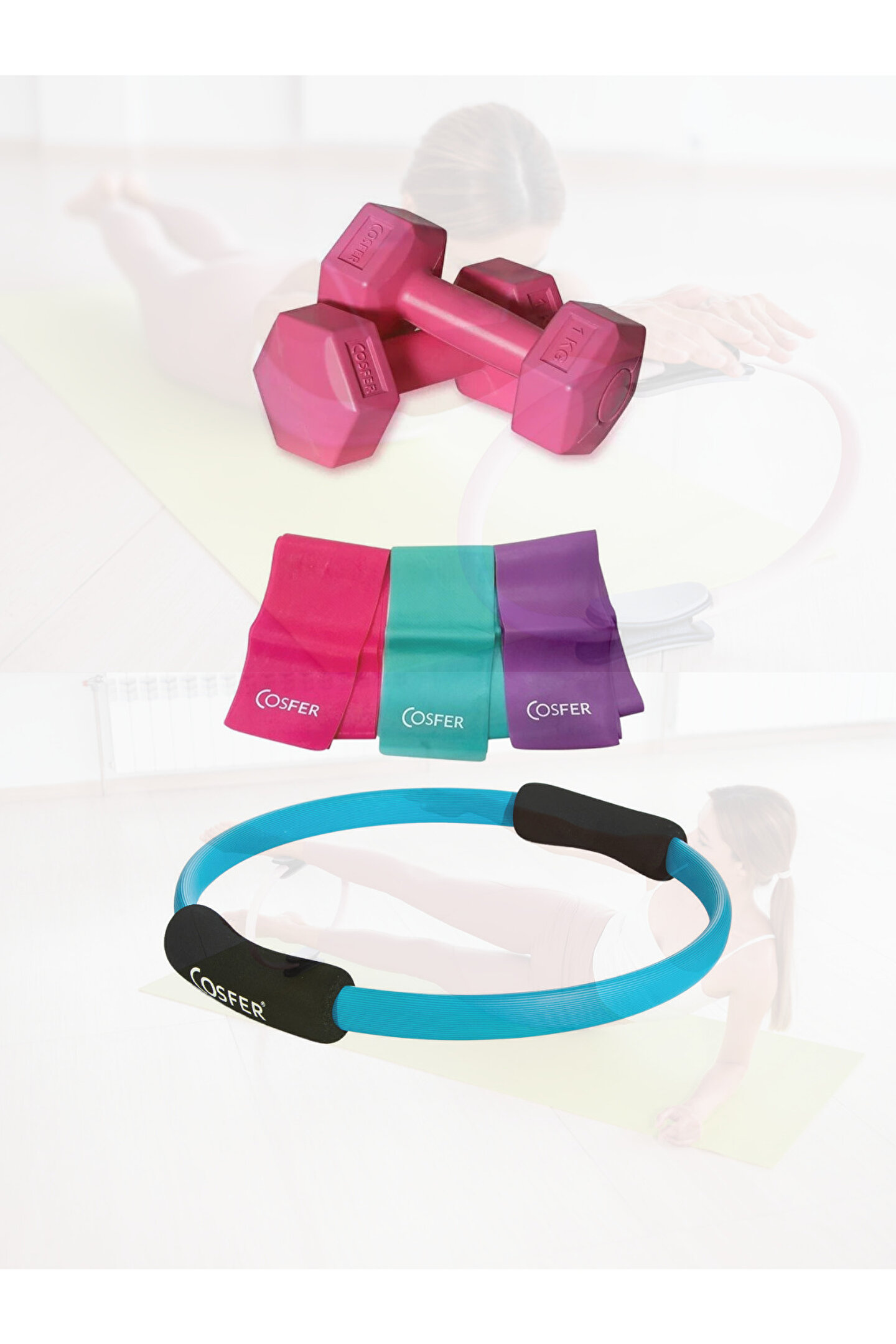 - Pilates egzersizlerinizi evinizin konforunda gerçekleştirebileceğiniz 3'lü set, fitness rutininizi kolayca şekillendirmenize olanak tanır.; - Direnç lastikleri ve dambıllar ile farklı kas gruplarını hedef alarak dengeli bir antrenman programı oluşturabilirsiniz.; - Pilates çemberi sayesinde esneklik ve denge egzersizlerinizi daha etkili bir şekilde yapabilirsiniz.; - Nemli bir bezle kolayca temizlenebilen bu set, hijyenik kullanım için idealdir.; - CN menşei, kalite ve güvenilirliği temsil eden bir üretim standardını garanti eder.;