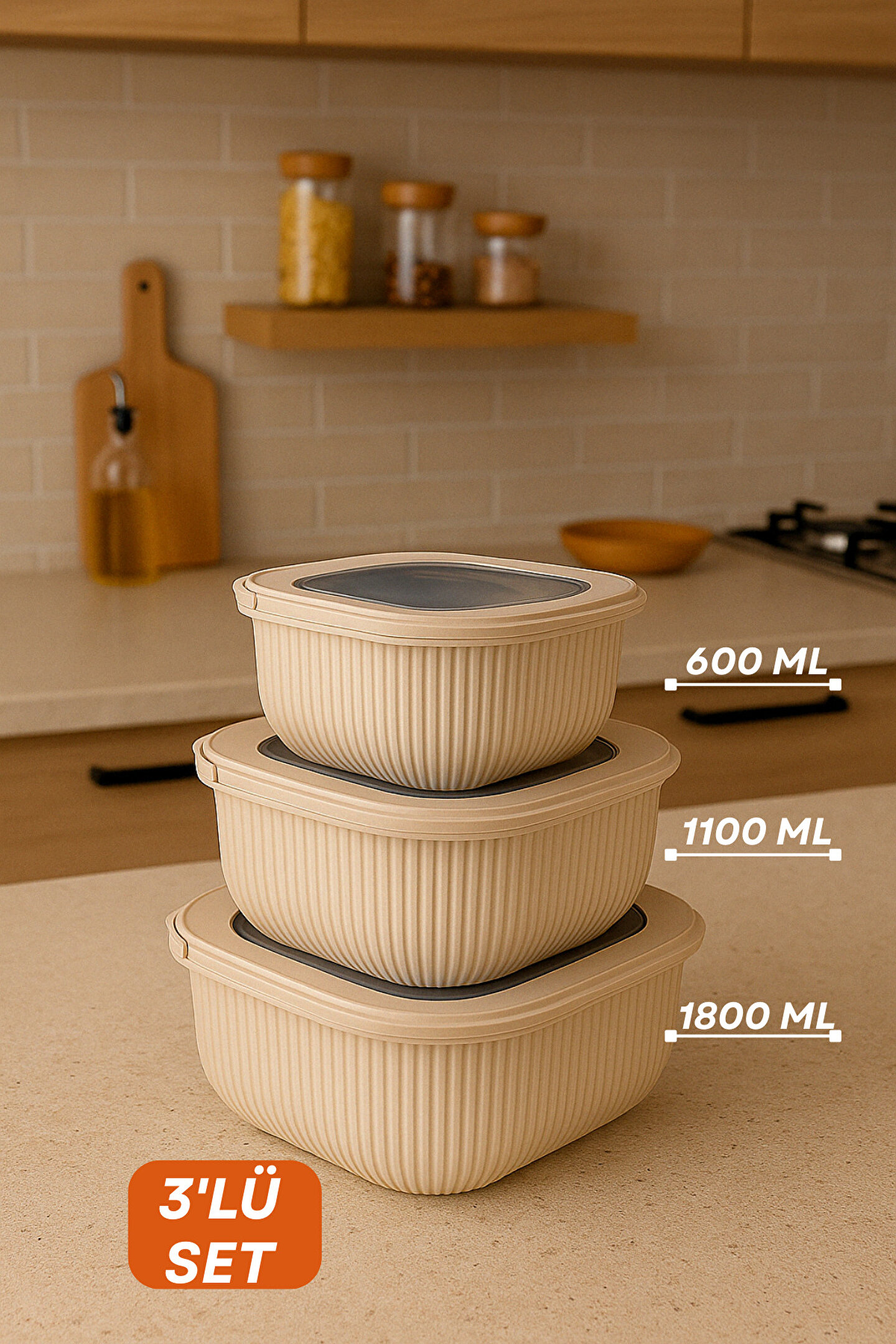 welcomein 3lü Renkli Kilitli Kapaklı Saklama Kabı Difrize Mikrodalga ve Buzdolabı Uyumlu Düzenleyici