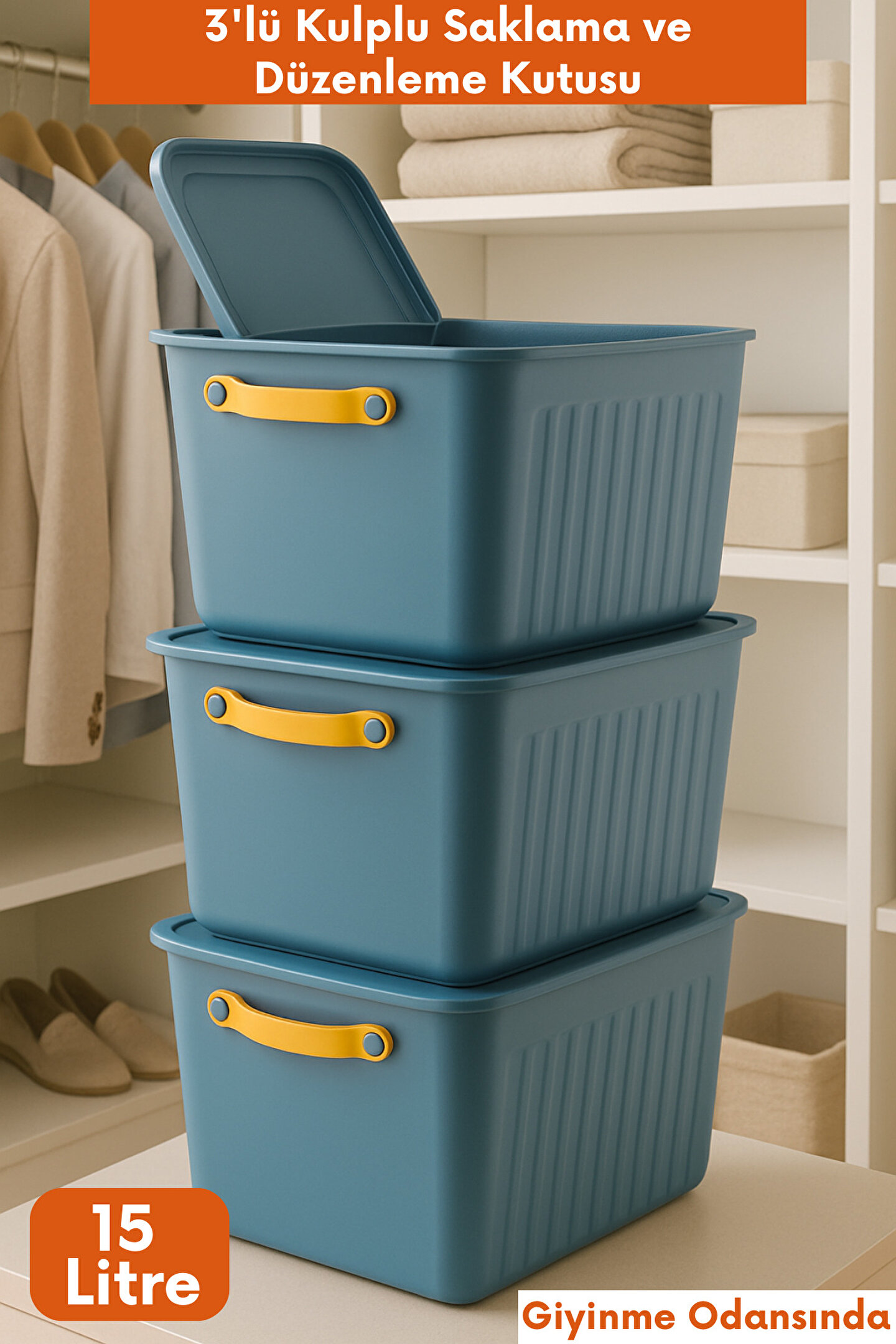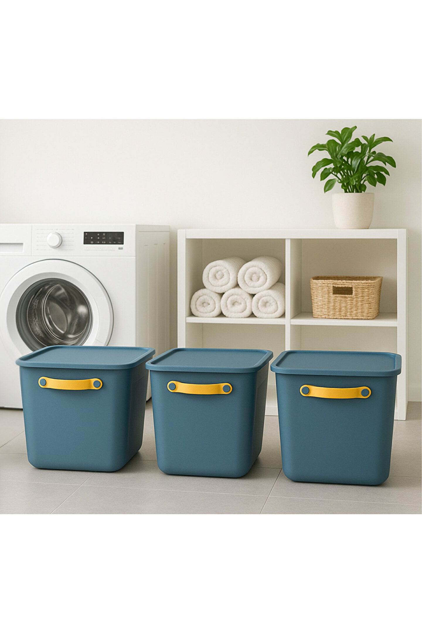 Modern tasarımı ve canlı renkleriyle evinize düzen katacak bu 3'lü kapaklı saklama kutusu seti, çamaşır odasından mutfağa, banyodan çocuk odasına kadar her alanda kullanıma uygundur. Dayanıklı plastik malzemeden üretilmiştir, üst üste yerleştirilebilir yapısı sayesinde yerden tasarruf sağlar. Her kutuda bulunan ergonomik sarı taşıma sapı sayesinde taşımak oldukça kolaydır.