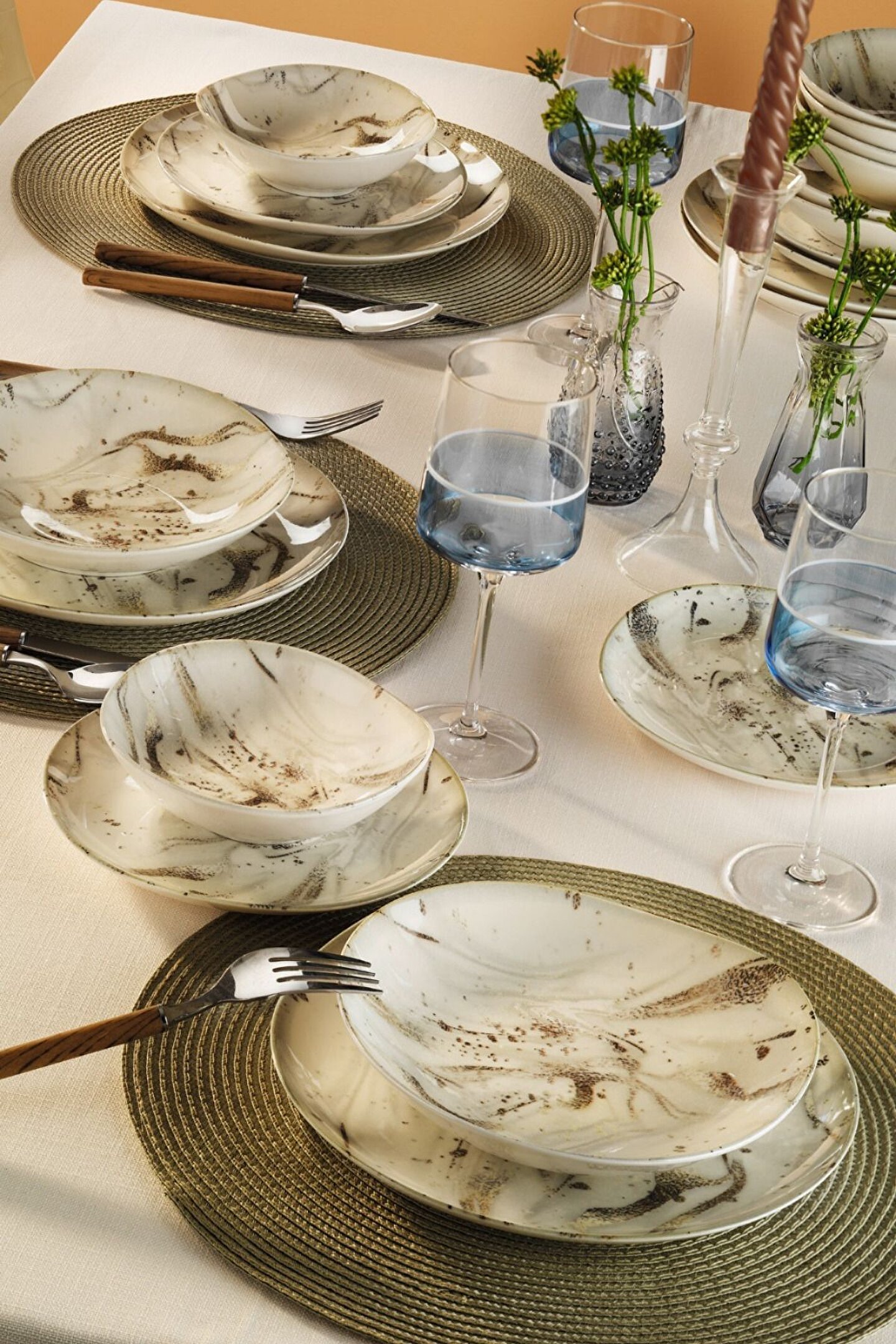 6 Kişilik 24 Parça Roden Mystic Marble Porselen Yemek Takımı Pasta,Çorba,Yemek,Servis Tabak Takım