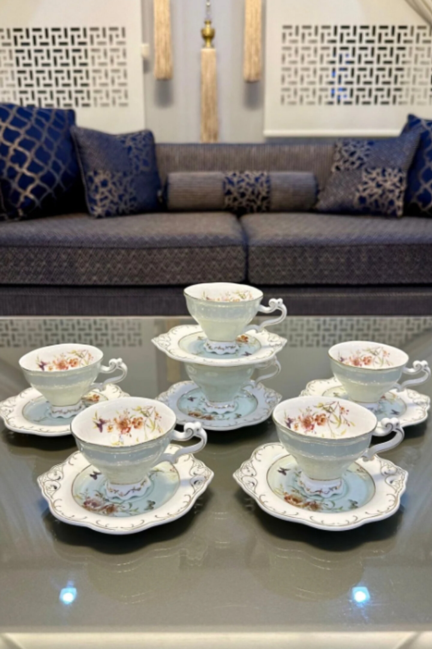 Set İçeriği: Görselde 6 adet fincan ve fincan tabağı olduğu anlaşılmaktadır (6'lı kahve fincan takımı).