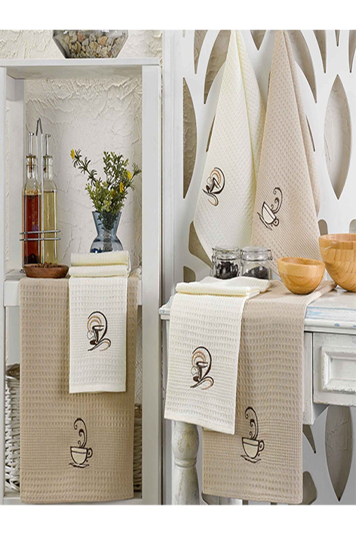 welcomein 6 Parça %100 Pamuk 40 x 60cm Kahve Desenli Mutfak Havlusu Seti Mutfak Kurulama Bezi Seti