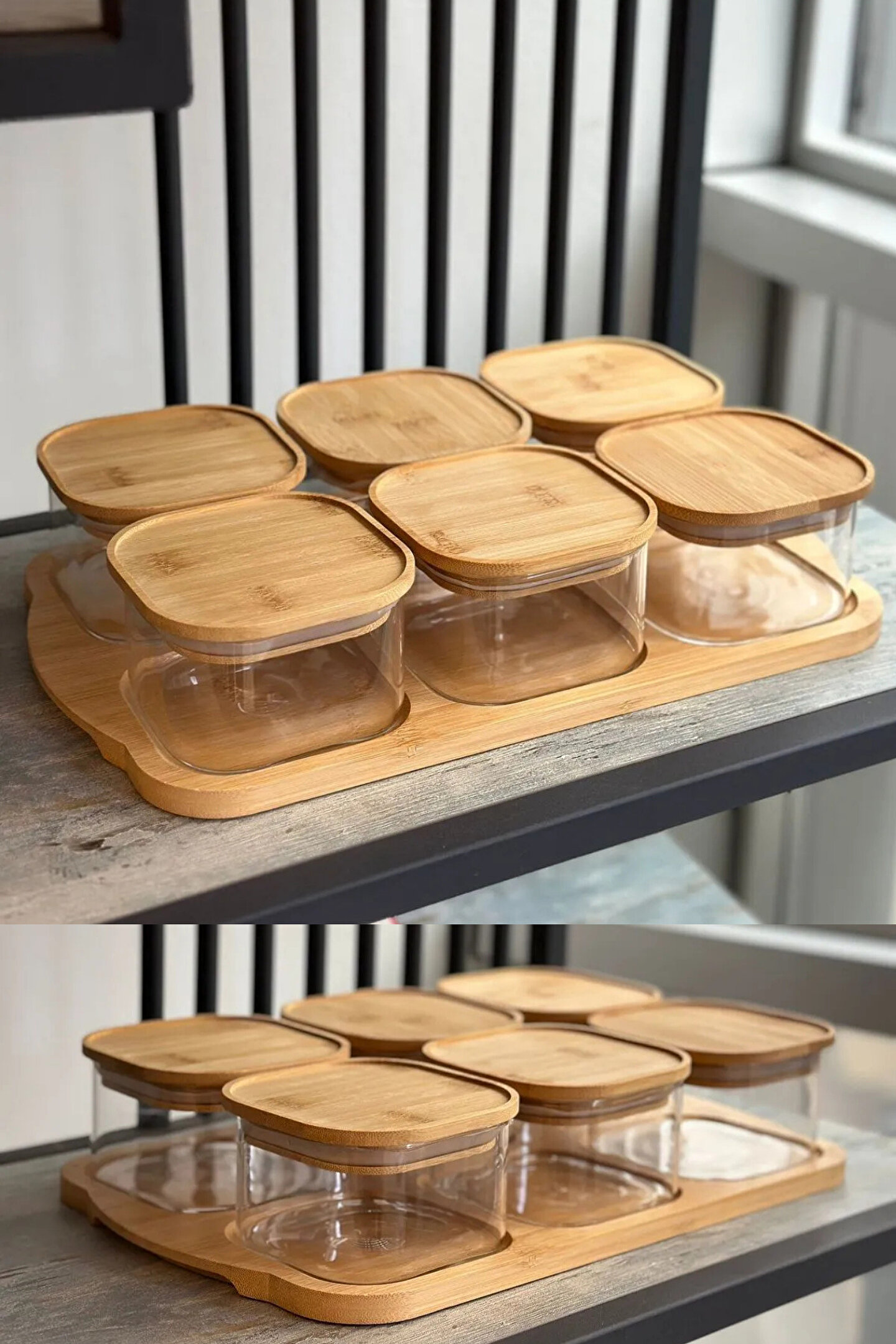 Neden Tercih Edilmeli?Bu bambu kapaklı cam kahvaltılık seti, hem pratik hem de şık bir çözüm sunar. Her sabah kahvaltıda en sevdiğiniz malzemeleri düzenli ve taze bir şekilde saklamak için mükemmeldir. Doğal bambu kapaklar, çevre dostu ve estetik görünümleriyle mutfaklarınıza sıcak bir hava katar.