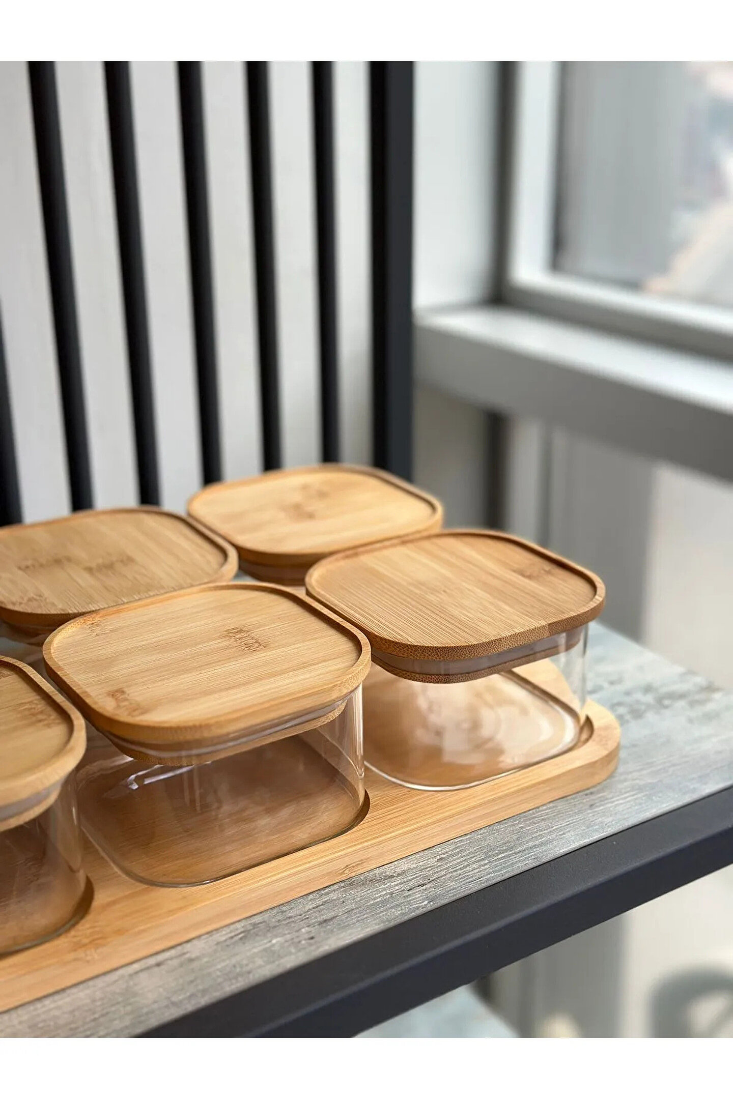 Ürün Adı:6'lı 300 ml Bambu Kapaklı Cam Kahvaltılık