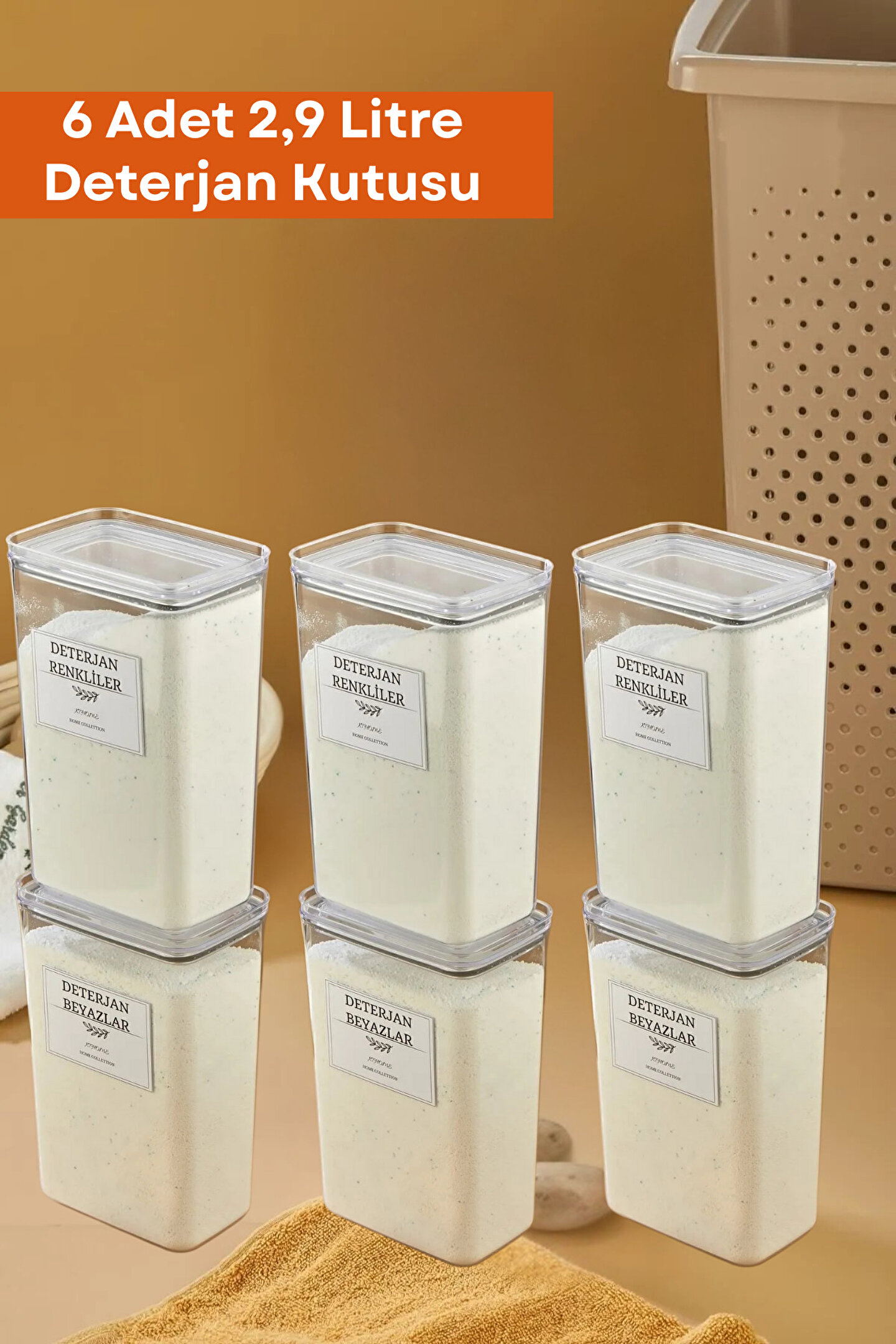 welcomein 6lı Deterjan Kutusuvakum Kapaklı Banyo Düzenleyici Saklama Kutusu 2.9 L Şeffaf Renk