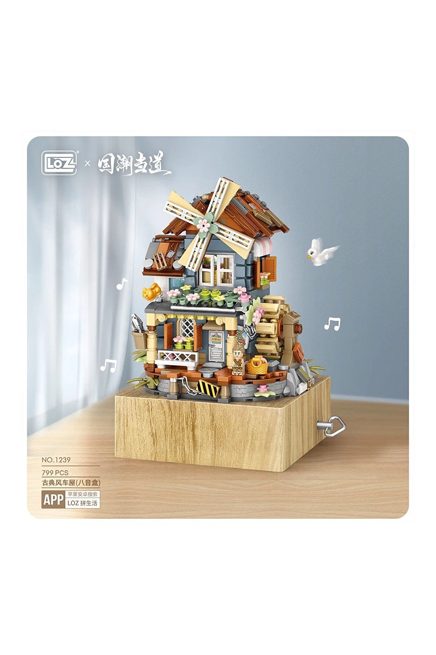 welcomein 799 Parça LOZ Blok Oyuncak Mini Değirmen Müzik Kutusu Yapı Tuğlaları Seti
