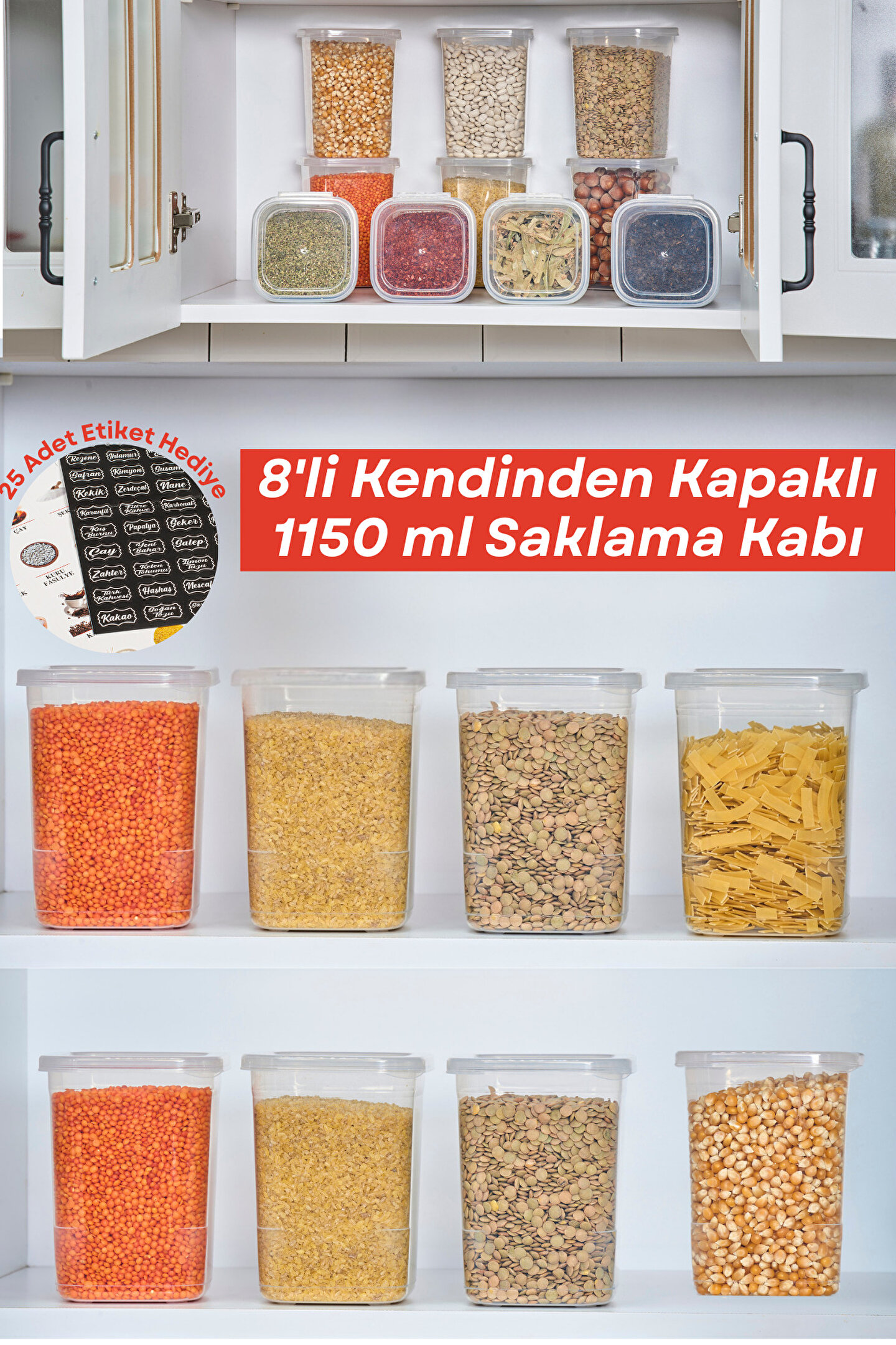 welcomein 8 Adet 16 Parça Etiketli Kendinden Kapaklı Erzak Dondurucu Baharat Saklama Kabı Seti 1,15 Litre