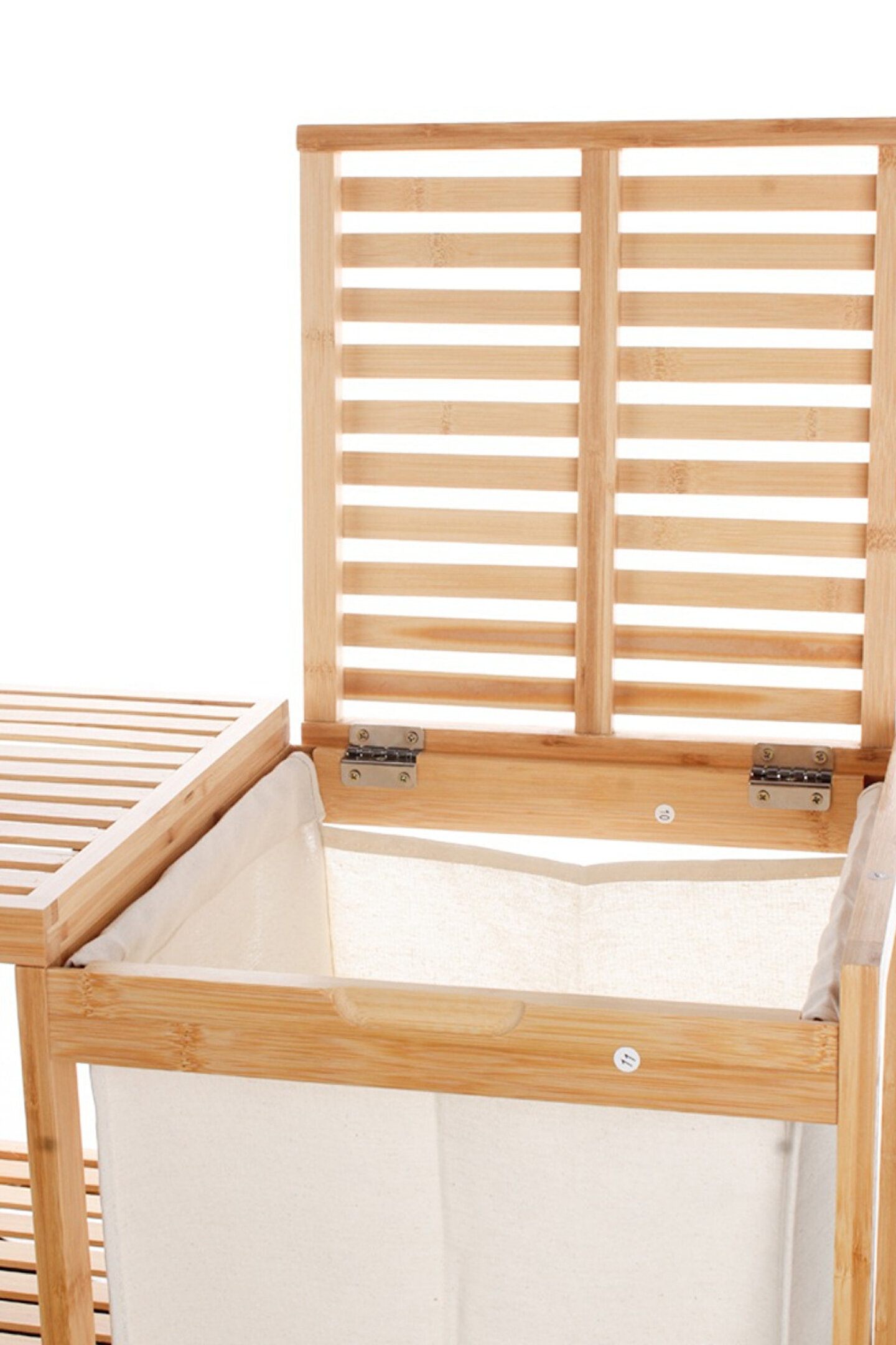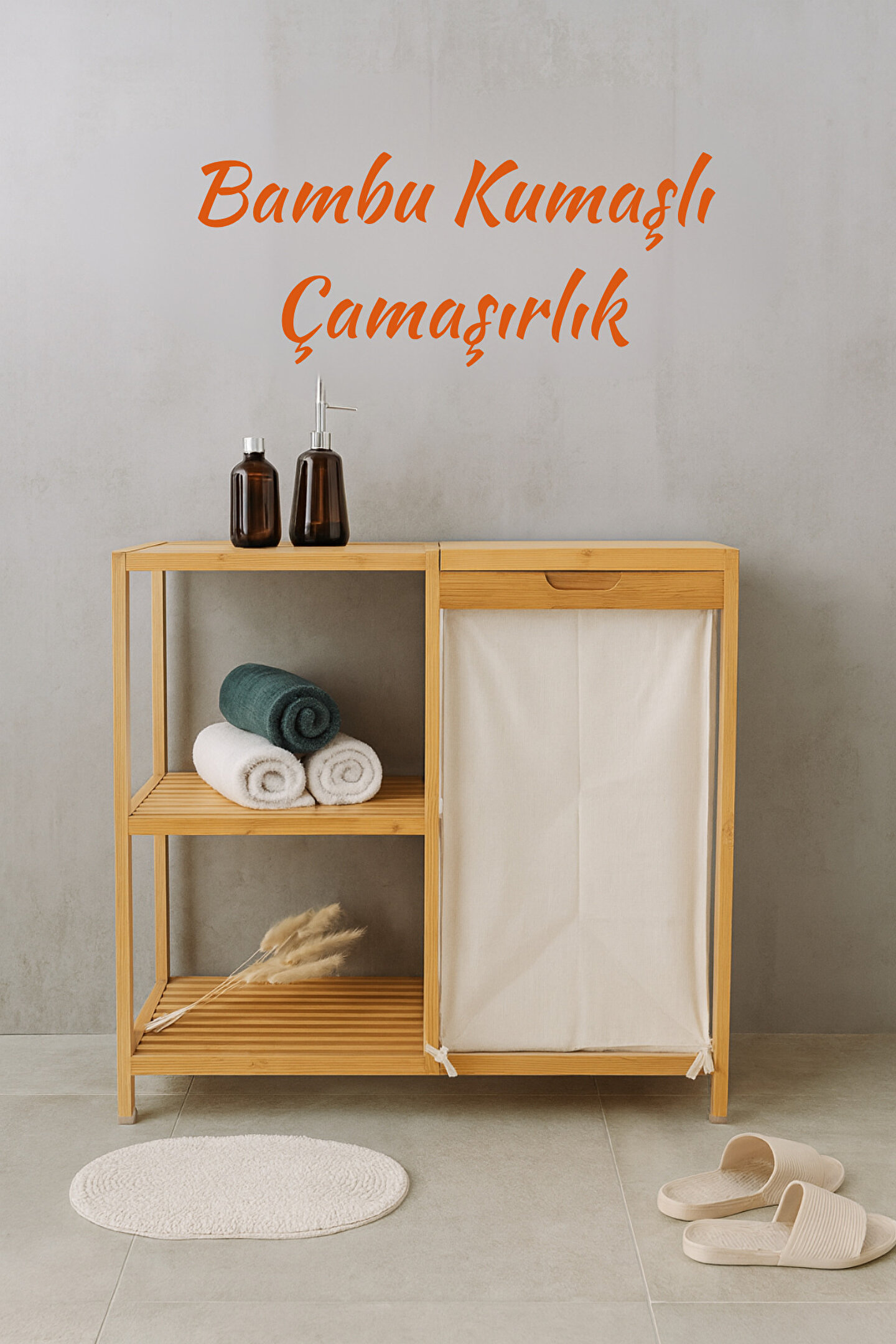 welcomein Bambu 3 Raflı Kirli Çamaşır Sepeti | Kapaklı & Kumaş Torbalı Doğal Ahşap Banyo Düzenleyici