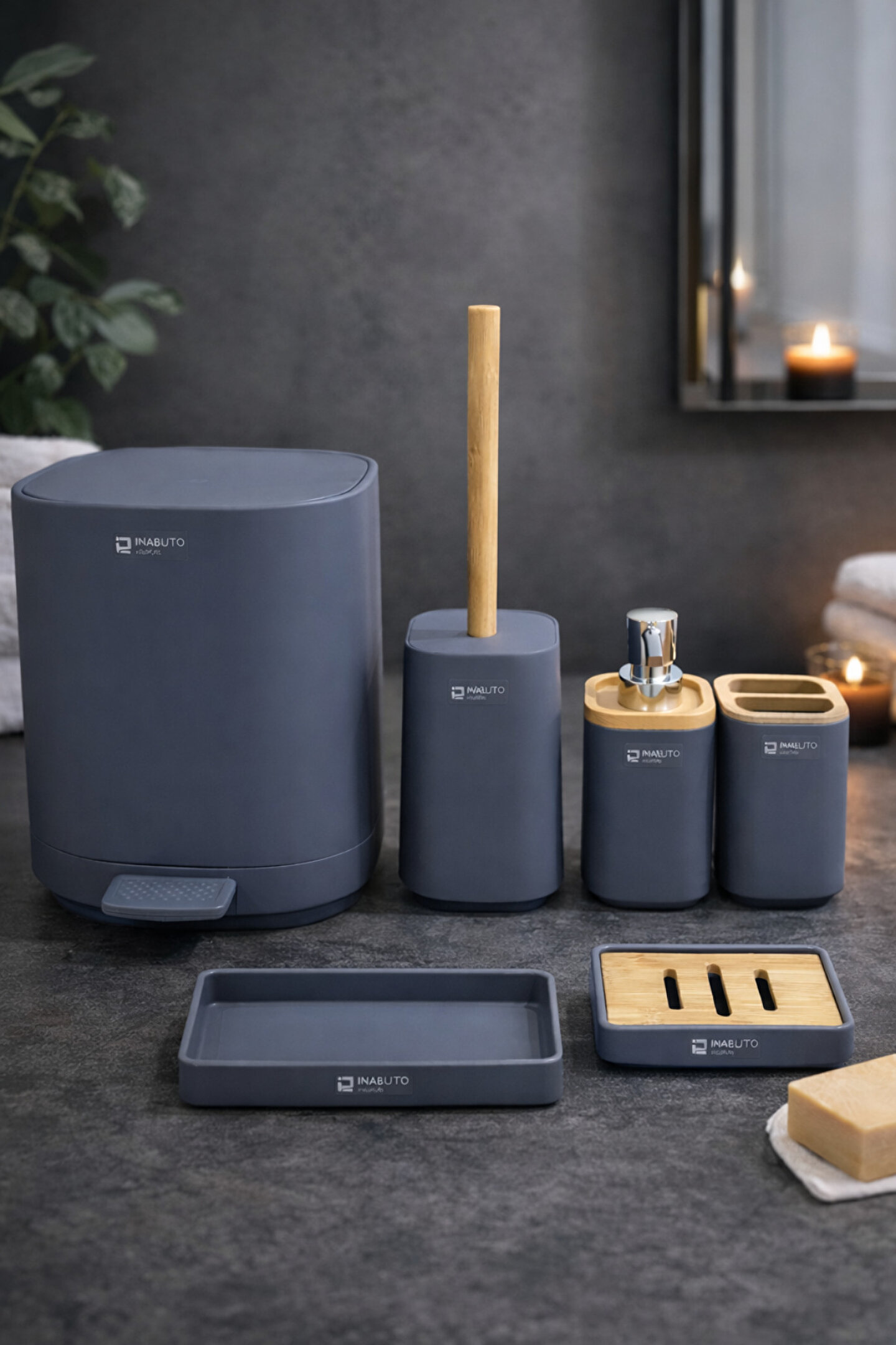 Banyonuzda modern ve düzenli bir görünüm için tasarlanan bambu detaylı 6 parça banyo aksesuar seti, hem tezgah üstünde şık bir düzen sağlar hem de günlük kullanım için pratik çözümler sunar. Mat yüzeyi ve doğal bambu dokusu sayesinde minimal, modern ve bohem tarz banyolara uyum sağlar.