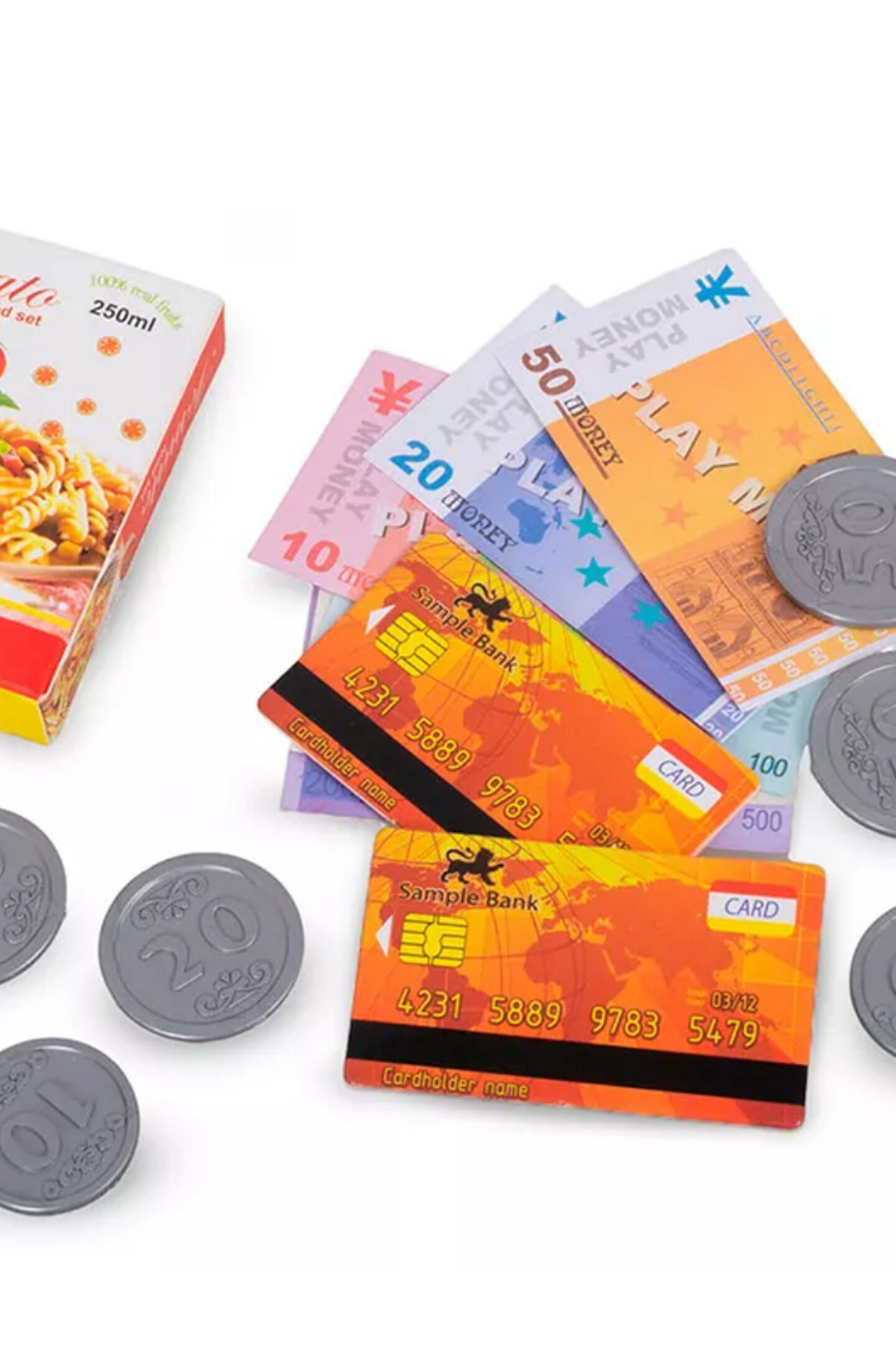 Kağıt Paralar ve Madeni Paralar: Set içerisinde bulunan çeşitli kağıt ve madeni paralar ile çocuklar, paranın değerini öğrenebilir ve sayma pratiği yapabilirler.