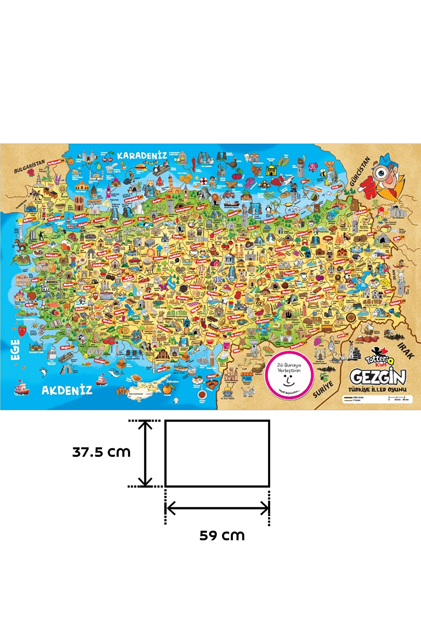 - Çocukların Türkiye'nin illerini öğrenmelerine yardımcı olan eğitici bir oyun.; - Hız, dikkat ve refleks gelişimini destekleyen interaktif bir oyuncak.; - 3 yaş ve üzeri çocuklar için uygun, güvenli malzemelerden üretilmiştir.; - Renkli ve görsel olarak çekici tasarımı ile çocukların ilgisini çeker.; - Ebeveynlerin de keyifle oynayabileceği ailece vakit geçirmeye yönelik bir aktivite.;