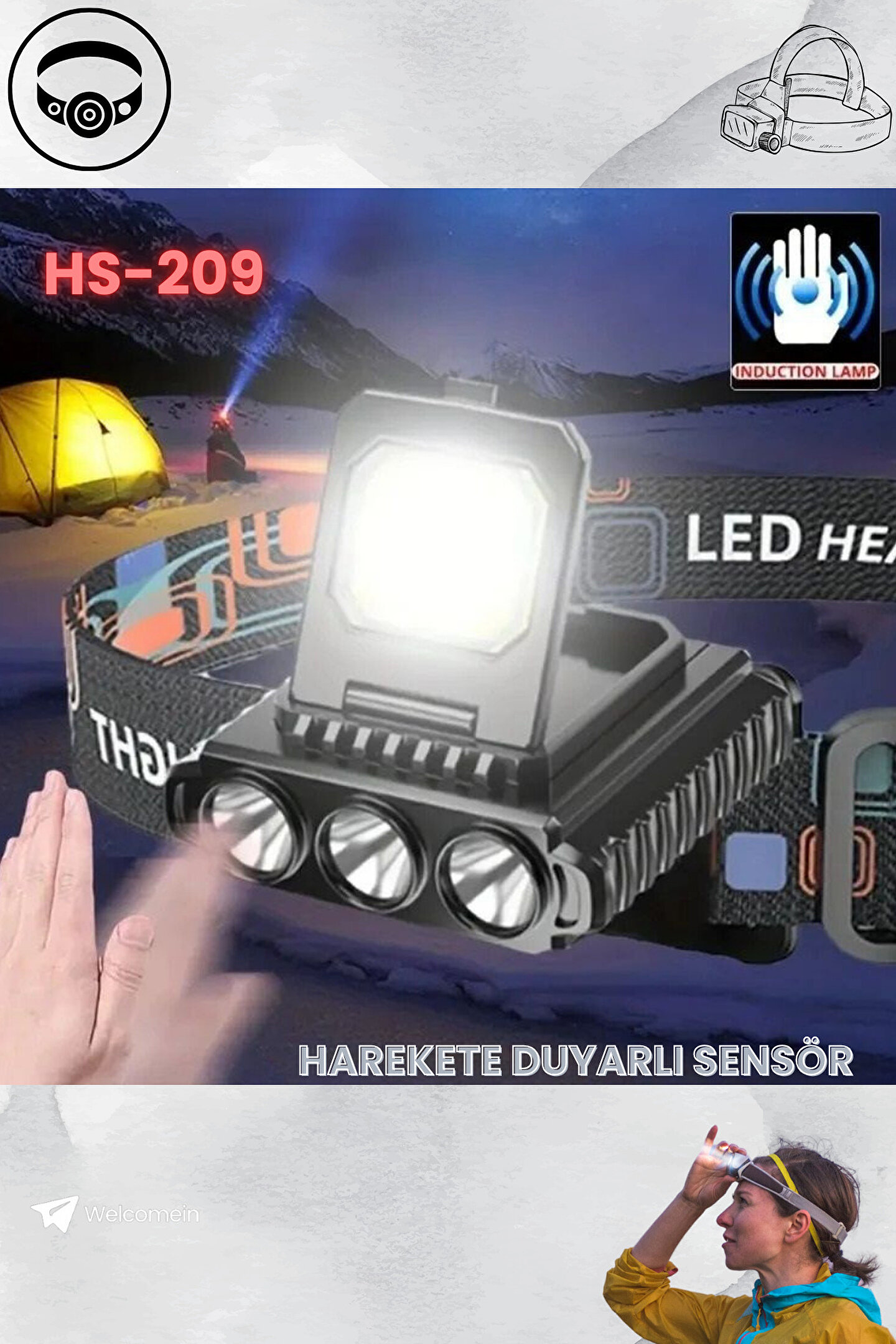 Kafa Feneri Sensörlü Kafa Lambası Tepe Işığı Ultra Ergonomik Profosyonel