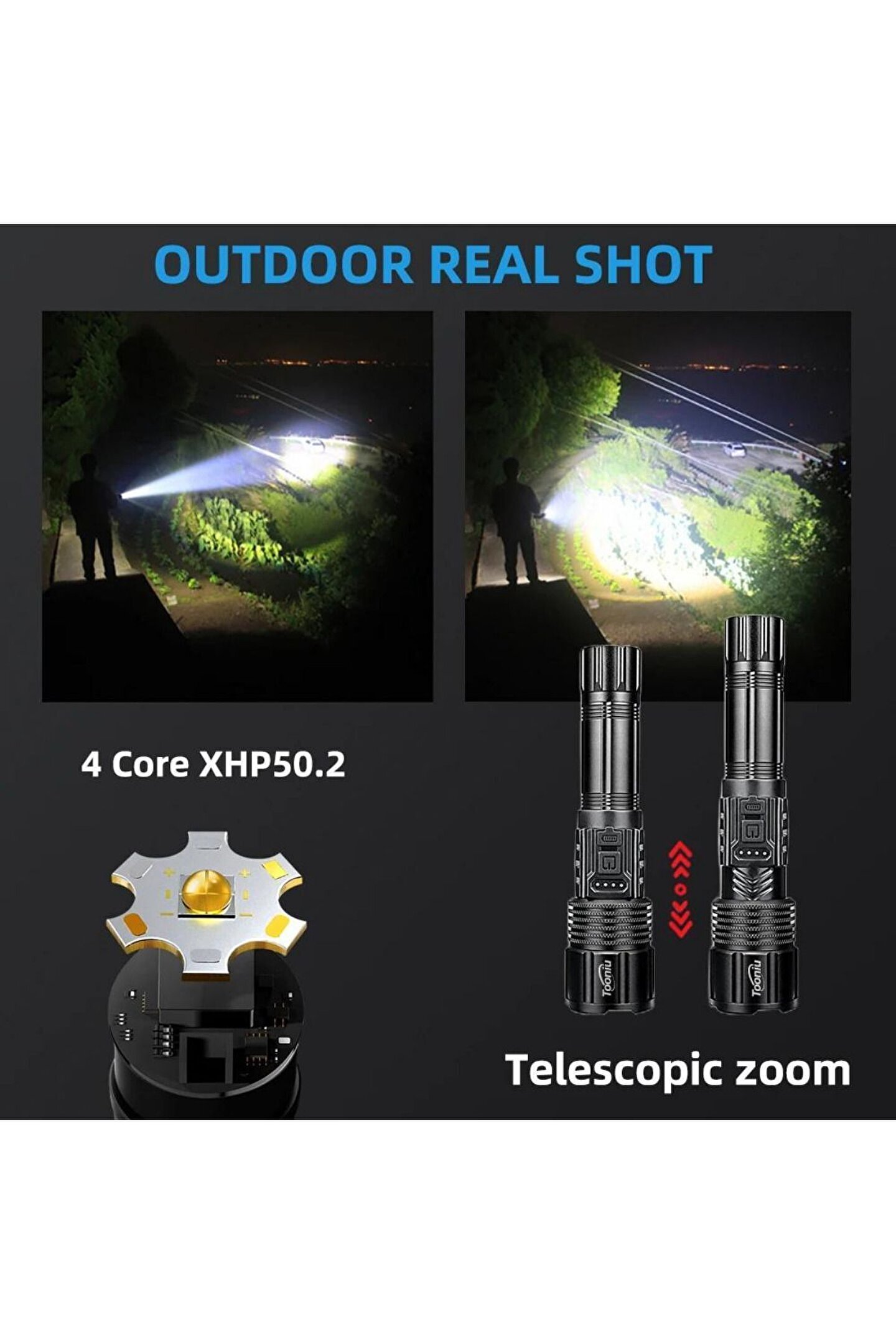 welcomein LED El Feneri USB IPX-6 Su Geçirmez Zoom Taktik El Işığı Kamp Balıkçılık Yürüyüş için USB Şarj