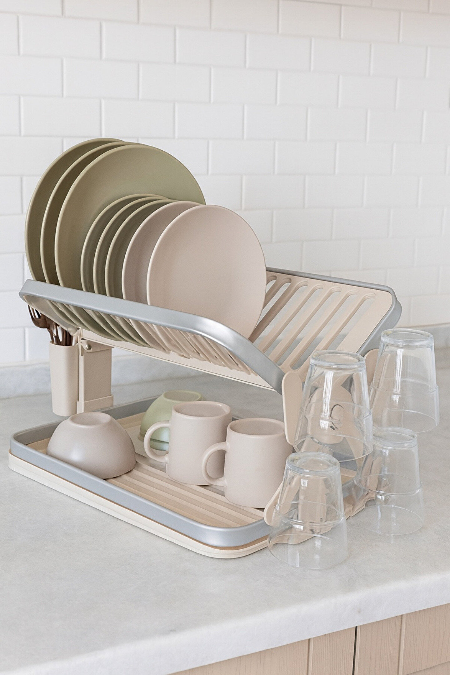 Metal Bulaşıklık Kurutmalık Su Tahliye Tepsili Çatal-Bıçak Bölmeli Tabak Bardak Organizeri