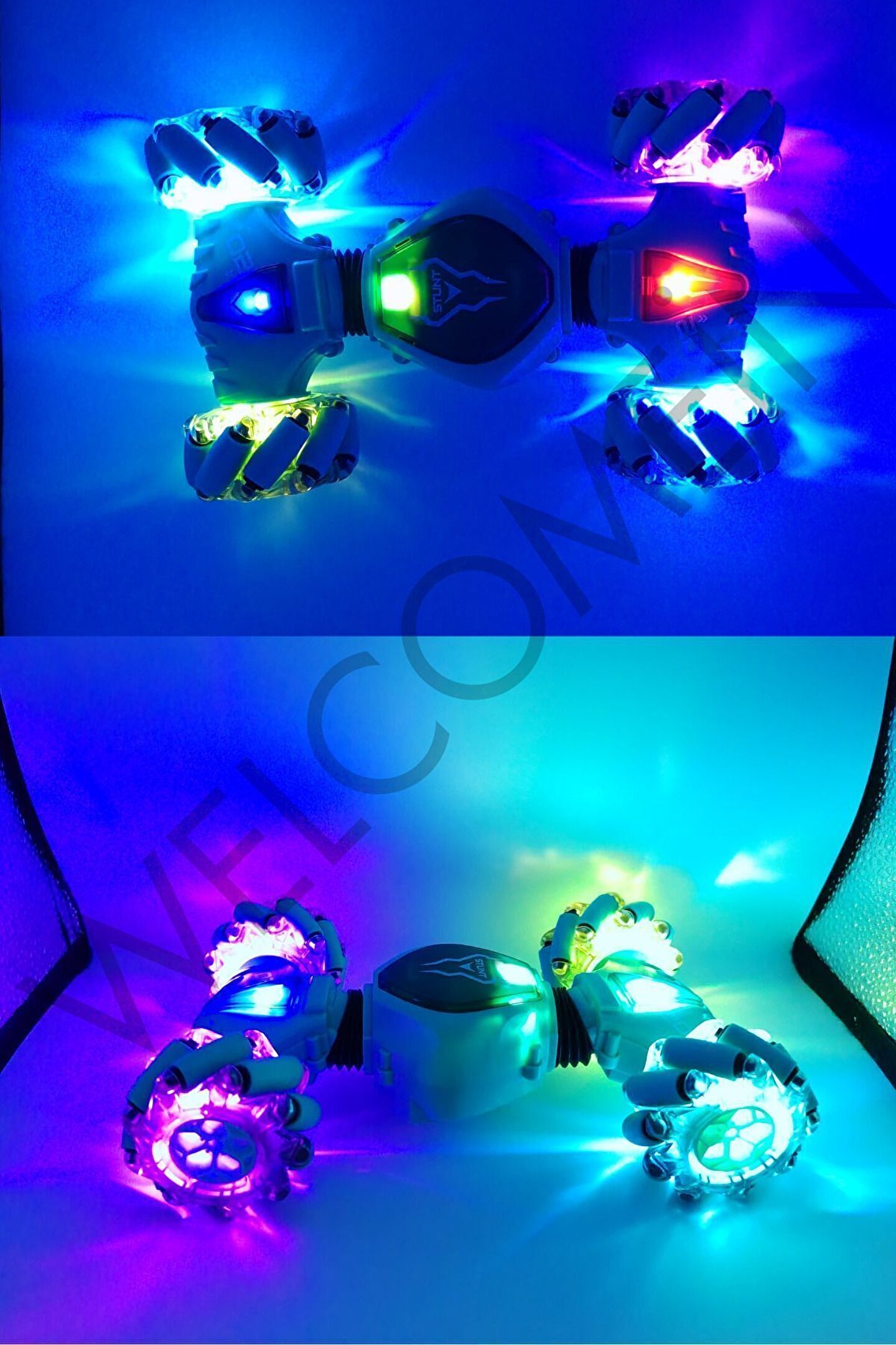 2; 4 GHz frekansında bir bilekten kumandalı ve bir uzaktan kumandalı olmak üzere 2 adet kumandaya sahiptir; Yatay gidebilen lastikleri sayesinde zorlu manevraları kolayca gerçekleştirebilir ve drift atabilir; Dikey hale gelebilen özelliği sayesinde eğlenceli ve heyecan verici sürüş deneyimi sunar; Tırmanma özelliği ile engelleri aşar; Güçlü led ışık efektleriyle donatılmıştır, hem gündüz hem de gece kullanımı için uygundur; Çocukların el; göz koordinasyonunun gelişmesine yardımcı olur; Çocuklar ve yetişkinler için eğlenceli ve dinamik bir sürüş deneyimi sunar; Kumandalar 2 adet ince(kumanda pili)pil ile çalışır; (piller dahil değildir);