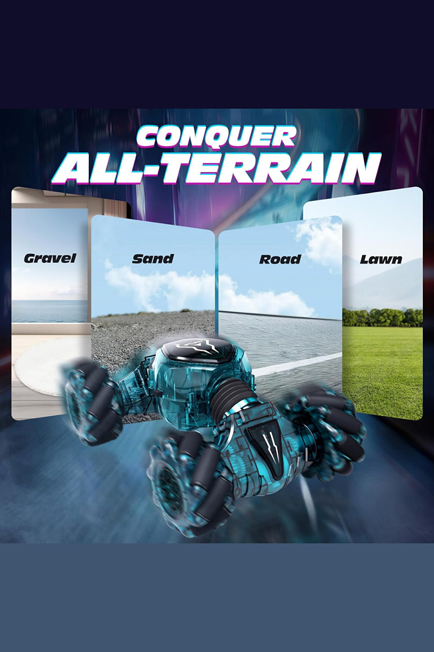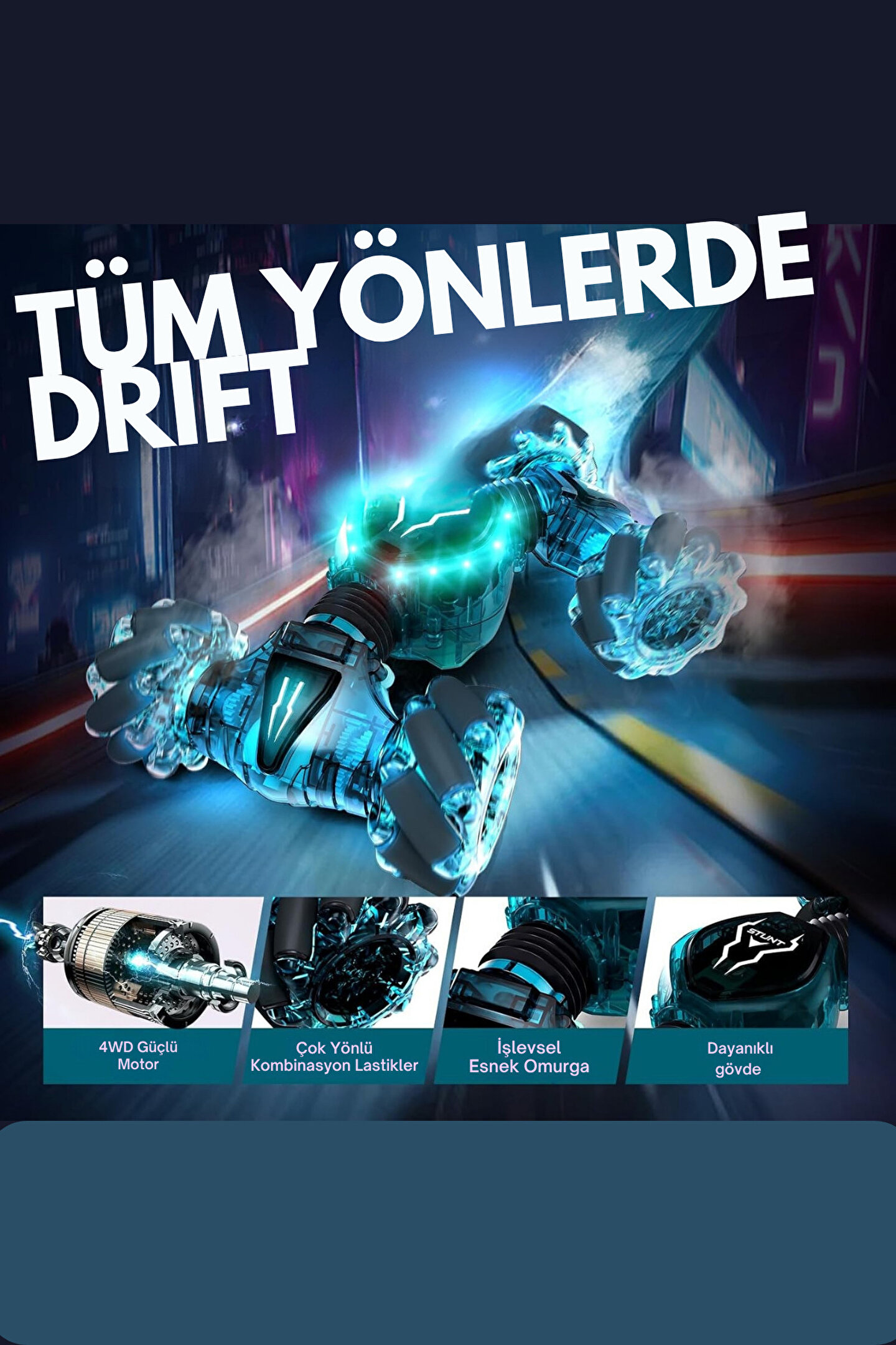 2; 4 GHz frekansında bir bilekten kumandalı ve bir uzaktan kumandalı olmak üzere 2 adet kumandaya sahiptir; Yatay gidebilen lastikleri sayesinde zorlu manevraları kolayca gerçekleştirebilir ve drift atabilir; Dikey hale gelebilen özelliği sayesinde eğlenceli ve heyecan verici sürüş deneyimi sunar; Tırmanma özelliği ile engelleri aşar; Güçlü led ışık efektleriyle donatılmıştır, hem gündüz hem de gece kullanımı için uygundur; Çocukların el; göz koordinasyonunun gelişmesine yardımcı olur; Çocuklar ve yetişkinler için eğlenceli ve dinamik bir sürüş deneyimi sunar; Kumandalar 2 adet ince(kumanda pili)pil ile çalışır; (piller dahil değildir);