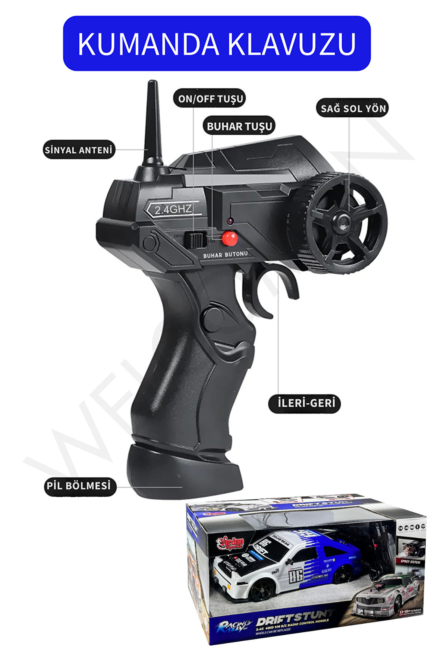 - 3 yaş ve üzeri çocuklar için ideal, eğlenceli ve güvenli bir oyun deneyimi sunar; - 2.4 GHz frekanslı uzaktan kumanda ile kolay kontrol imkanı sağlar, çocukların motor becerilerini geliştirmelerine yardımcı olur; - 1:16 oranında küçültülmüş gerçekçi boyutlarıyla, çocukların hayal gücünü genişletir ve sürüş deneyimini gerçekçi kılar; - 4x4 çekiş gücü sayesinde zorlu arazi koşullarında bile sorunsuz bir sürüş deneyimi yaşatır; - Buhar efekti ve sesli motor sesi ile gerçekçi bir yarış atmosferi yaratır, çocukların duyusal algılarını zenginleştirir; - Işıklı farları ile gece veya düşük ışık koşullarında bile görünürlüğü artırarak güvenli bir oyun ortamı sağlar;
