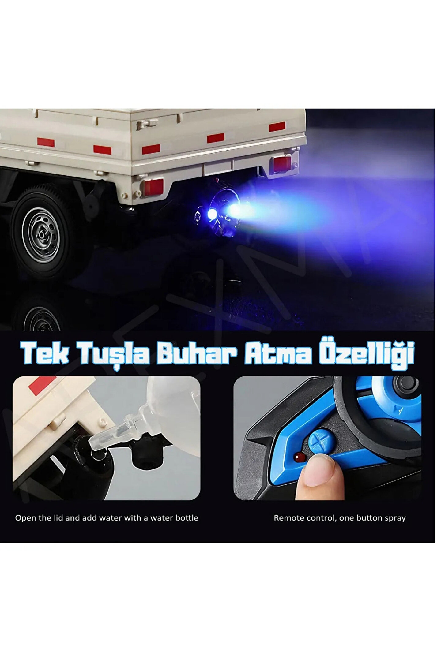 Çocukların hayal gücünü harekete geçiren bu 2.4GHz Uzaktan Kumandalı RC Kamyonet, sesli ve ışıklı efektleri, buhar püskürtme özelliği ve açılabilir kapılarıyla adeta gerçek bir kamyoneti aratmıyor! Şarjlı yapısı sayesinde uzun süreli oyun keyfi sunarken, güçlü uzaktan kumandası ile tam kontrol imkânı sağlar.