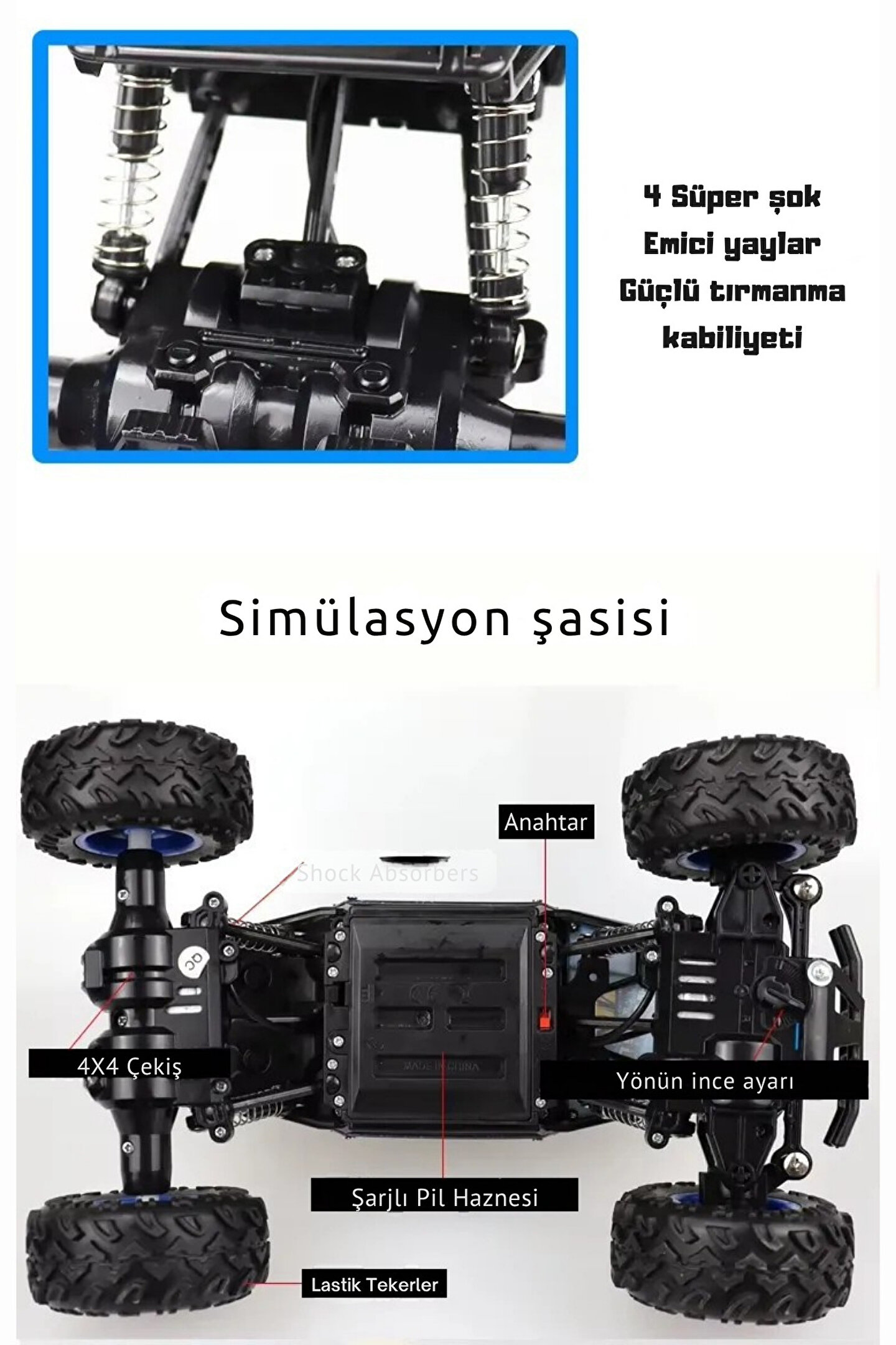 welcomein Oyuncak 4x4 Uzaktan Kumandalı Şarjlı Rock Crawler Büyük Teker Gerçekçi Araba 1:16 Ölçek
