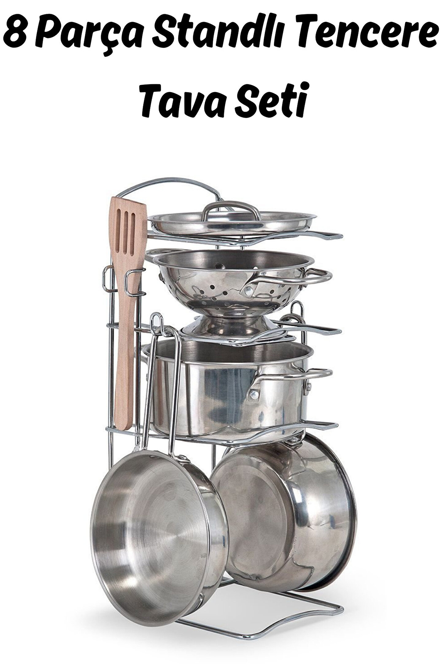 Ürün Adı: Oyuncak 8 Parça Raflı Standlı Çelik Tencere Tava Seti