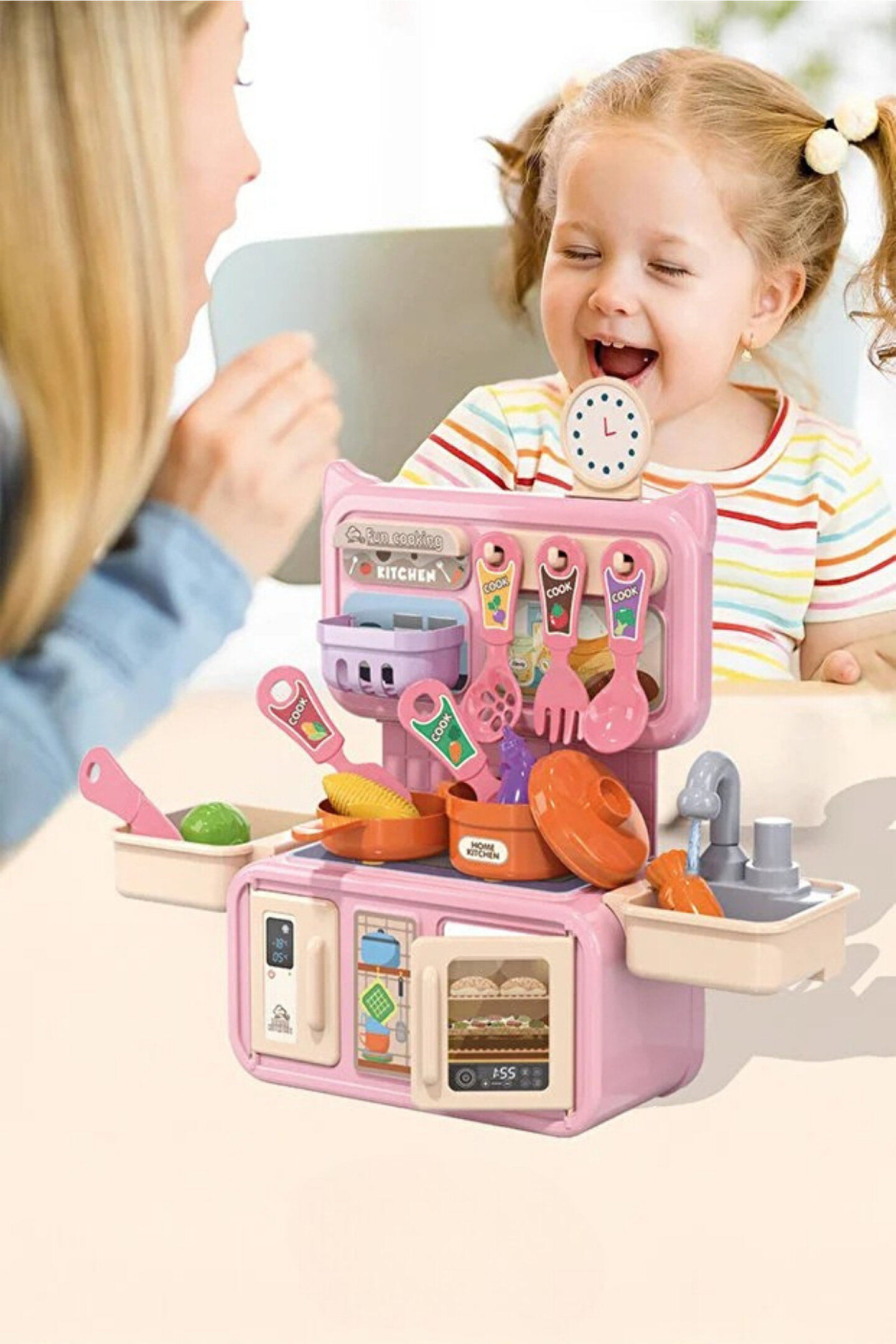 - 3 yaş ve üzeri çocuklar için ideal, eğlenceli ve eğitici bir oyuncak mutfak seti.; - Renkli ve sevimli tasarımıyla çocukların ilgisini çeken bu mutfak oyuncağı, yaratıcılıklarını geliştirir.; - Buharlı özelliği sayesinde gerçekçi bir pişirme deneyimi sunar ve çocukların hayal gücünü canlandırır.; - 20 parçadan oluşan set, çocukların farklı mutfak gereçleriyle oynayarak motor becerilerini geliştirmelerine yardımcı olur.;