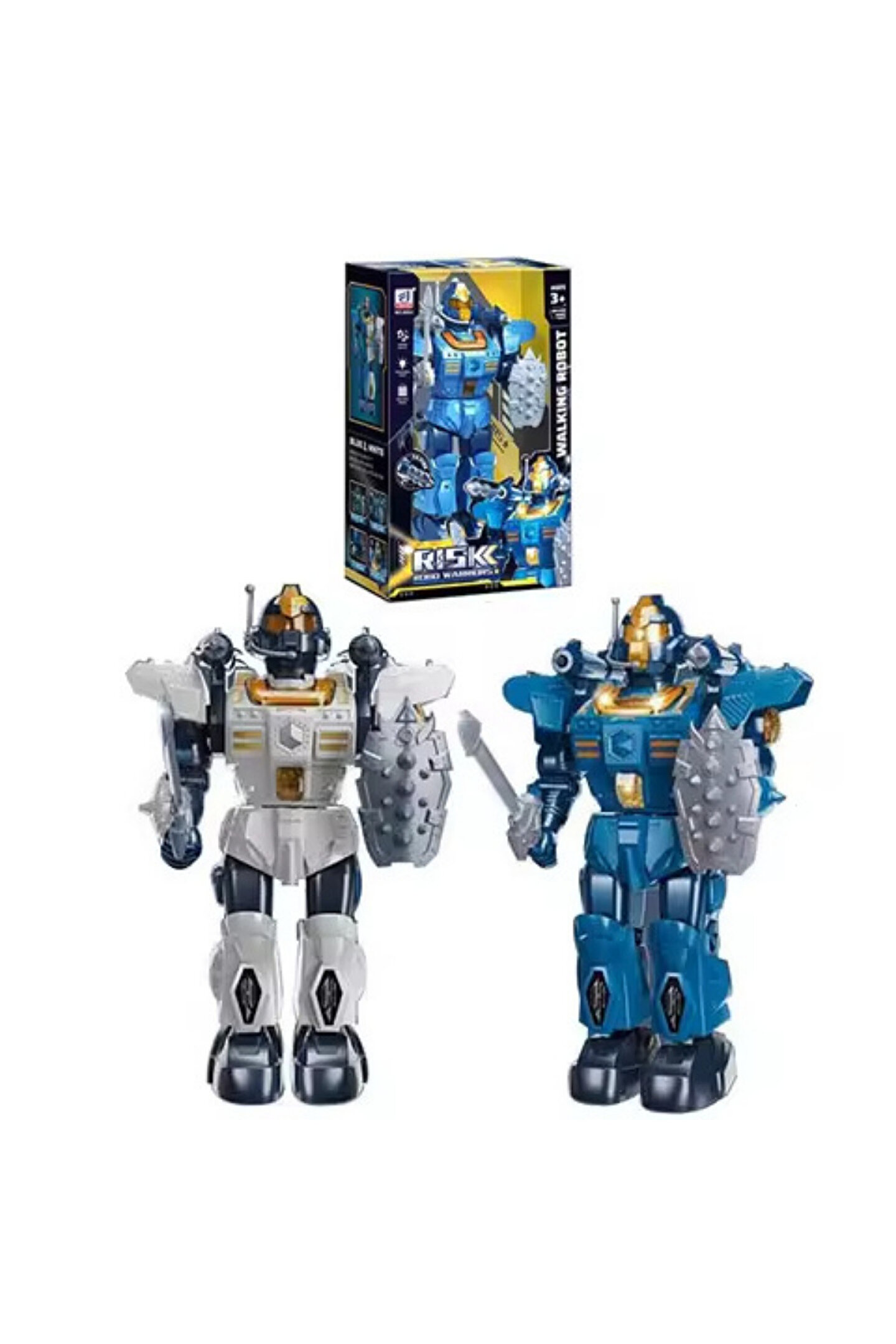- 3 yaş ve üzeri çocuklar için ideal bir oyuncak seçeneği sunar, onların eğlenceli vakit geçirmelerini sağlar.; - Işıklı ve müzikli özellikleriyle dikkat çeken bu robot, çocukların görsel ve işitsel duyularını geliştirir.; - Roket atan fonksiyonu sayesinde çocuklar, aksiyon dolu oyunlar oynayarak hayal güçlerini kullanırlar.; - Kılıç ve kalkan gibi aksesuarlarla donatılmış olan savaşçı robot, çocukların rol yapma oyunlarına yeni bir boyut katar.; - 360° dönebilme özelliği ile çocukların motor becerilerini ve koordinasyon yeteneklerini destekler.; - Pilli çalışması sayesinde kolayca kullanılabilir ve çocukların enerji dolu oyunlarına eşlik eder.;