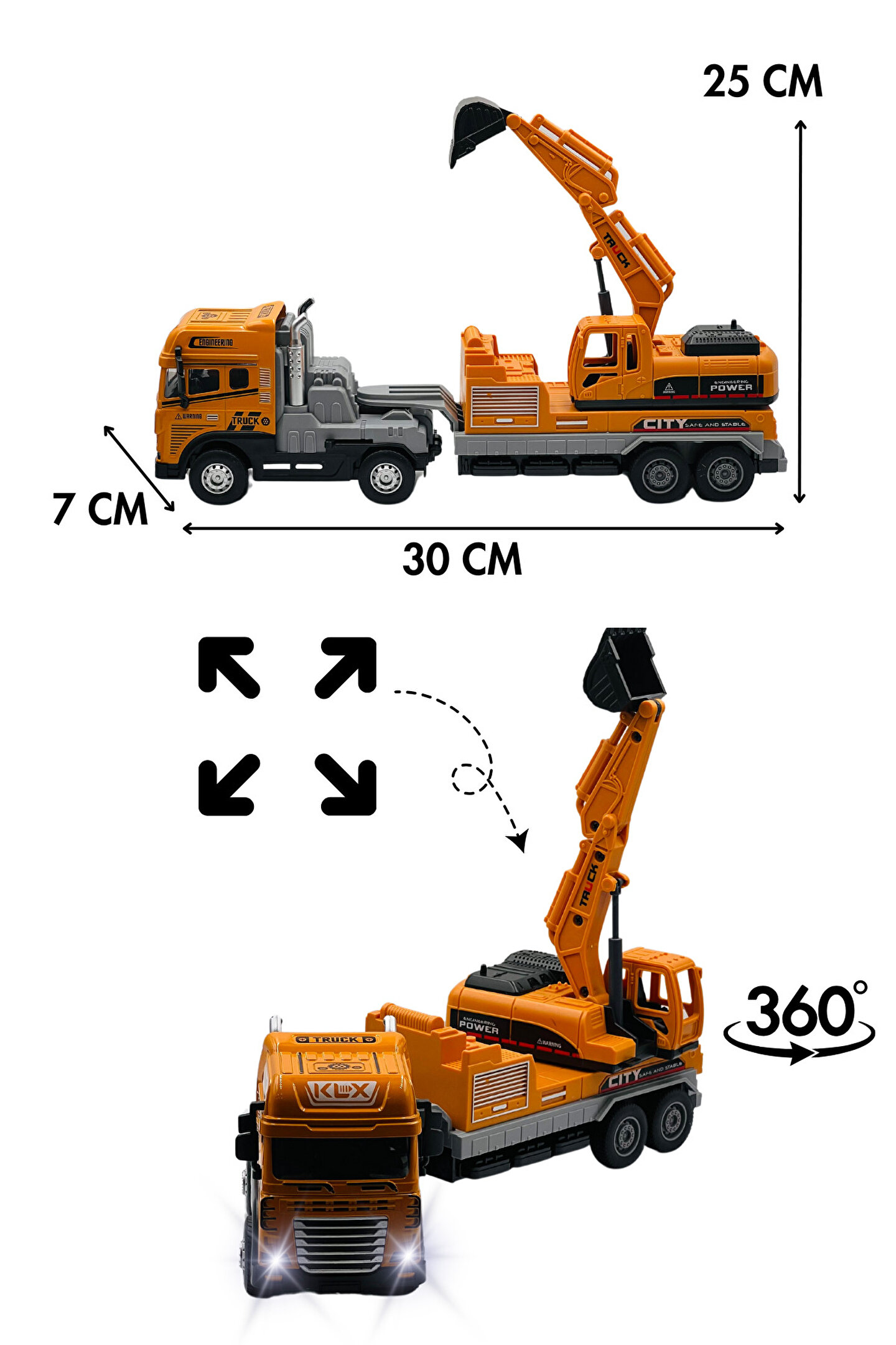 welcomein Oyuncak Kutulu İş Makinesi Sesli Işıklı Çek Bırak Metal Vinç, Beton Mikseri, Kamyon, Kepçe 30 Cm