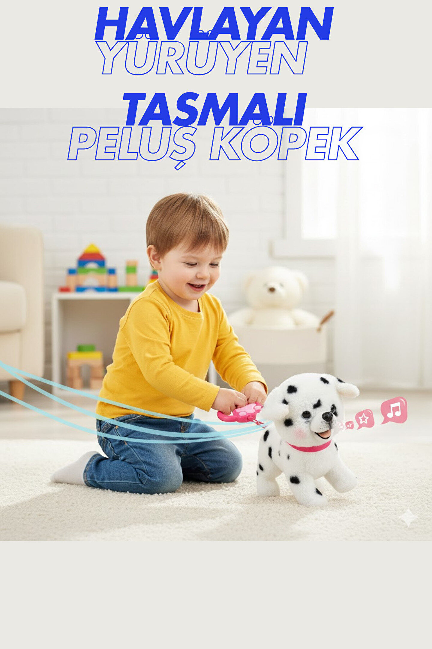 Oyuncak Peluş Tasmalı Havlayan Yürüyen Sesli Köpek Evcil Hayvan Dostluğu Pekiştirme