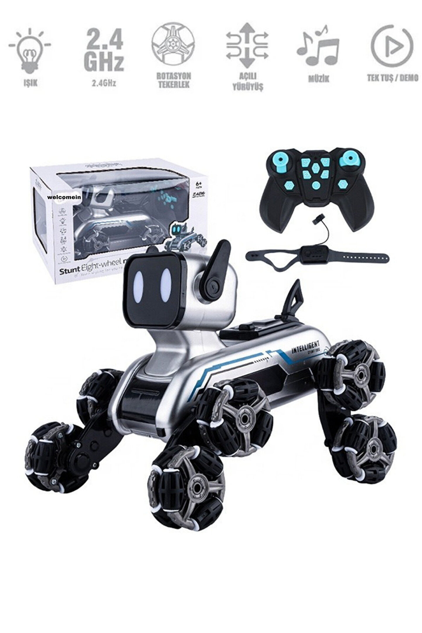 Oyuncak Şarjlı 2.4 Ghz Bilekten Kontrol Uzaktan Kumandalı Buharlı 8 Teker Çılgın Akrobat Köpek Araba