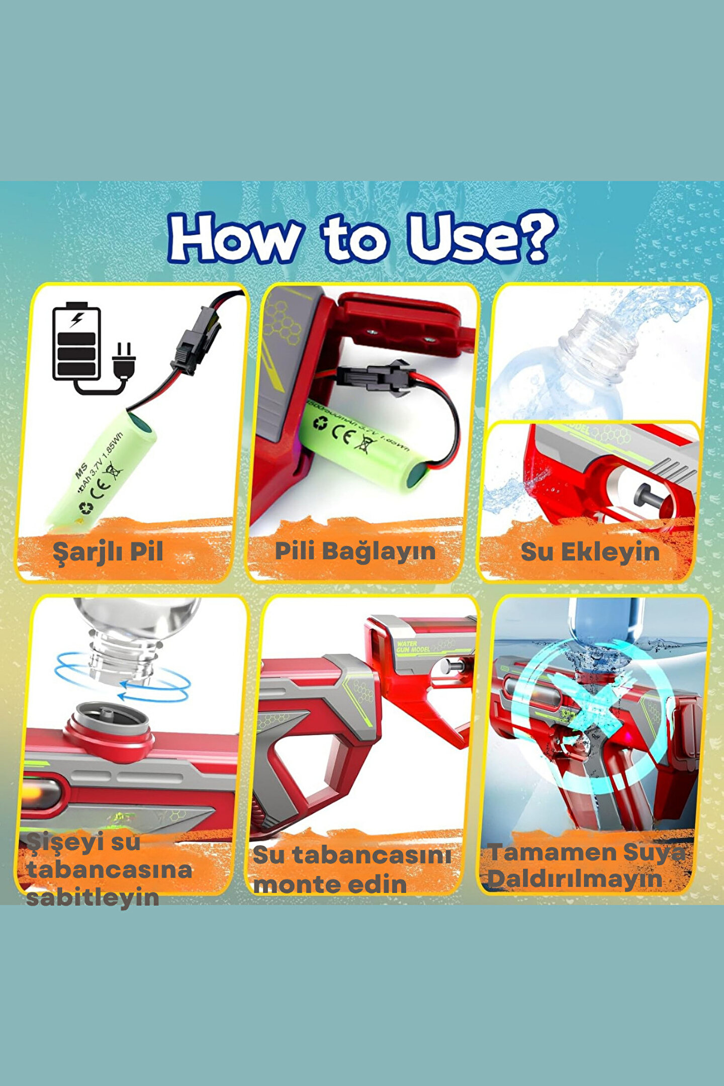 2IN1 5-7 M Atış Su Kapasitesi: 200ml Uzunluk:25 cm Şarjlıdır, dahil Yaş:6+