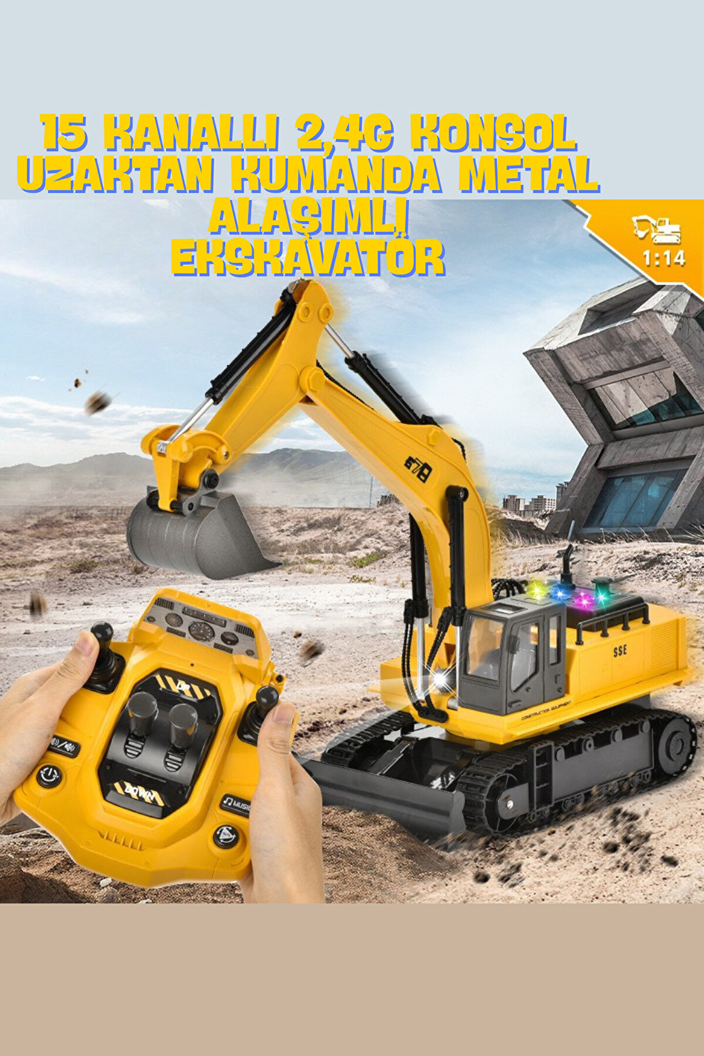 Oyuncak Sesli Işıklı Şarjlı 2.4Ghz Uzaktan Kumandalı 360° Dönen Metal Alaşım Ekskavatör İş Makinası