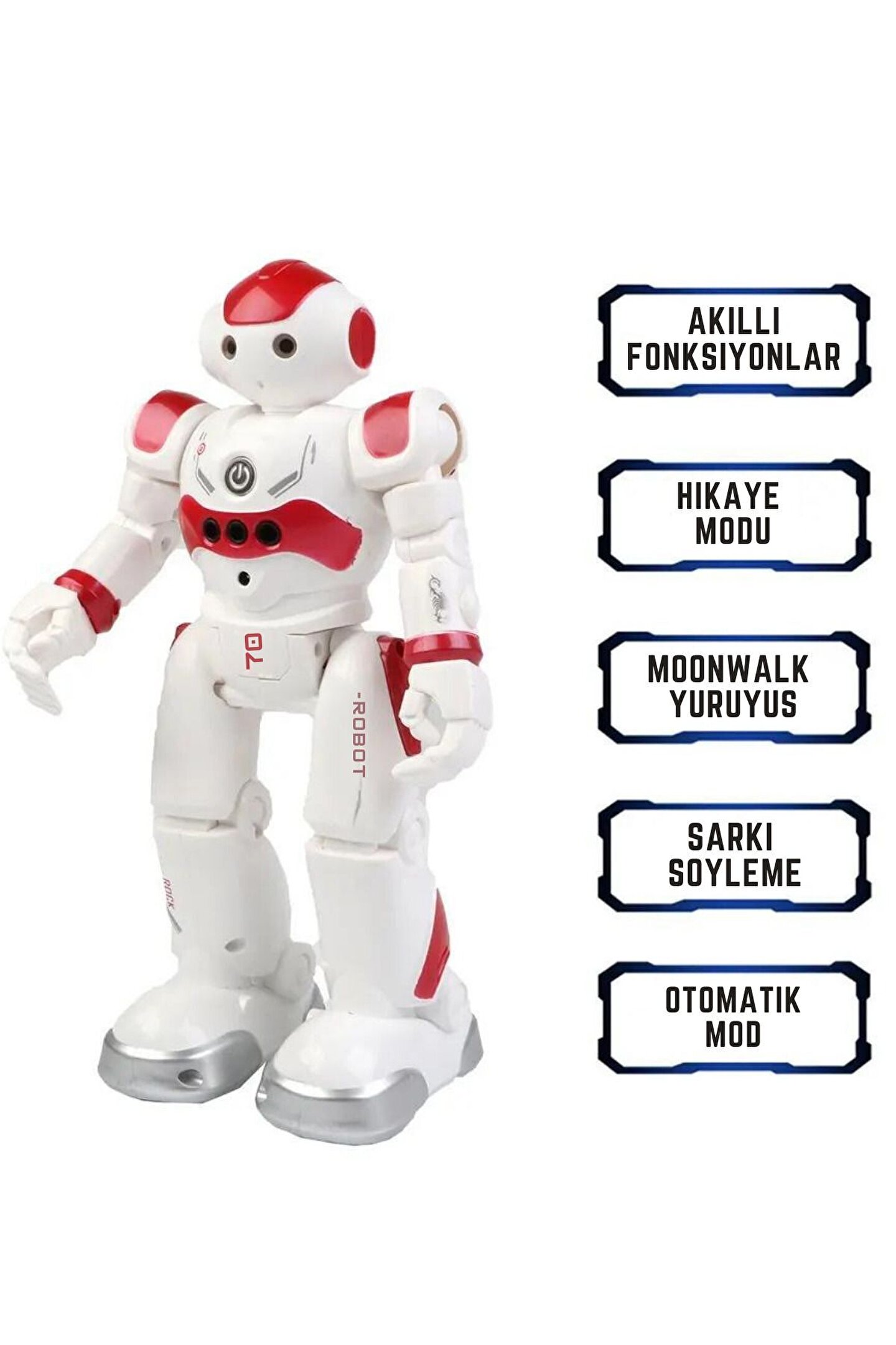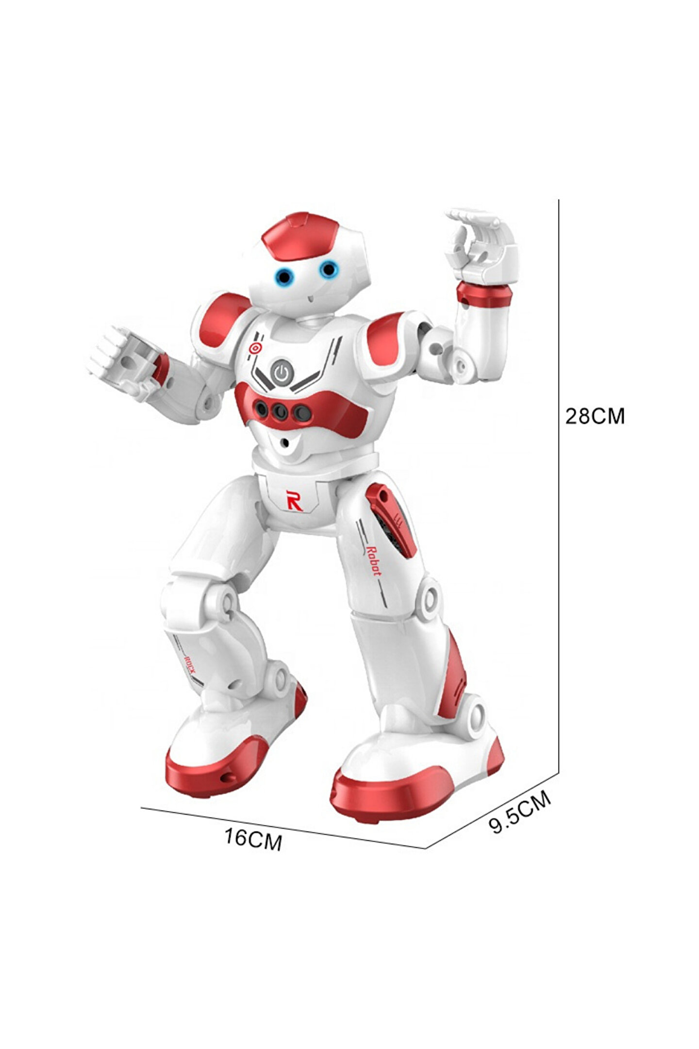 Kumandalı Şarjlı Hareketli Robot, 28 cm boyunda sensörlü bir robottur ve Moonwalk dansı yapabilir. ; Ayrıca şu özelliklere sahiptir: - Çok yönlü hareket - Işıklarla donatılmış - Müzik ve dans özelliği - Yürüme modu - Bekleme modu - Hareket kontrolü - Demo programı - USB bağlantısı Robot, hareket duyarlı el sensörü ile tamamen kontrol edilebilir ve 3.7V şarj edilebilir pil ile çalışır (pil kutusunda bulunur). ; Kumanda ise 2x1.5V AA pil ile çalışır (piller dahil değildir). ; Ürünün kutusu yaklaşık olarak 33x23x10,5 cm ölçülerindedir.;