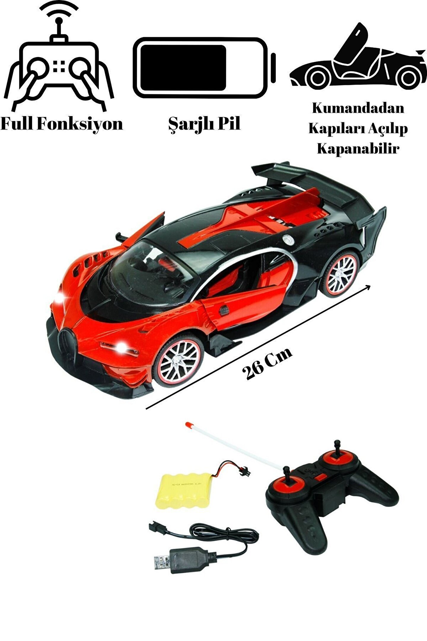 Oyuncak Uzaktan Kumandalı Şarjlı Işıklı Yarış Arabası Kapıları Açılıp Kapanabilen 1:14 26 cm