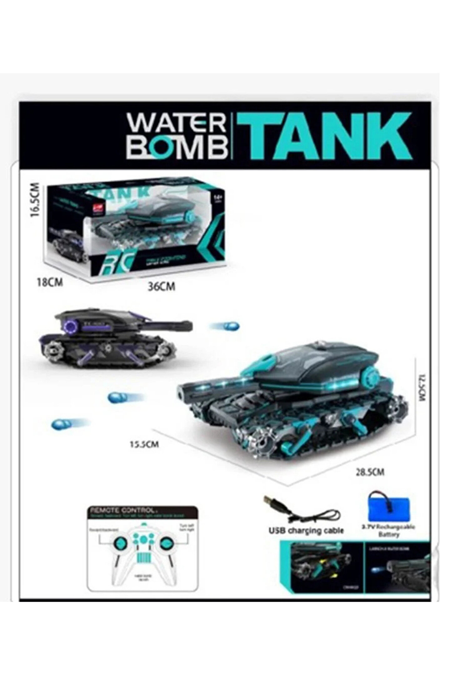 welcomein Oyuncak Uzaktan Kumandalı Sesli Ve Işıklı 2.4 Ghz Su Bombası Atan Tank